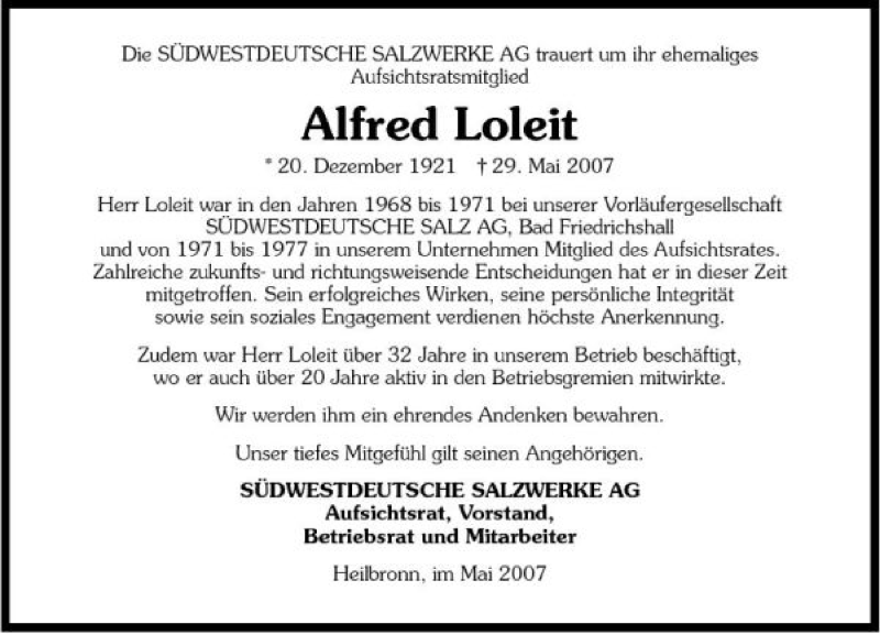 Hier finden Sie alle Traueranzeigen aus der Zeitung, die bisher für Alfred Loleit erschienen sind. Weitere Traueranzeigen, die in der Zeitung erscheinen, werden hier ebenfalls aufgelistet