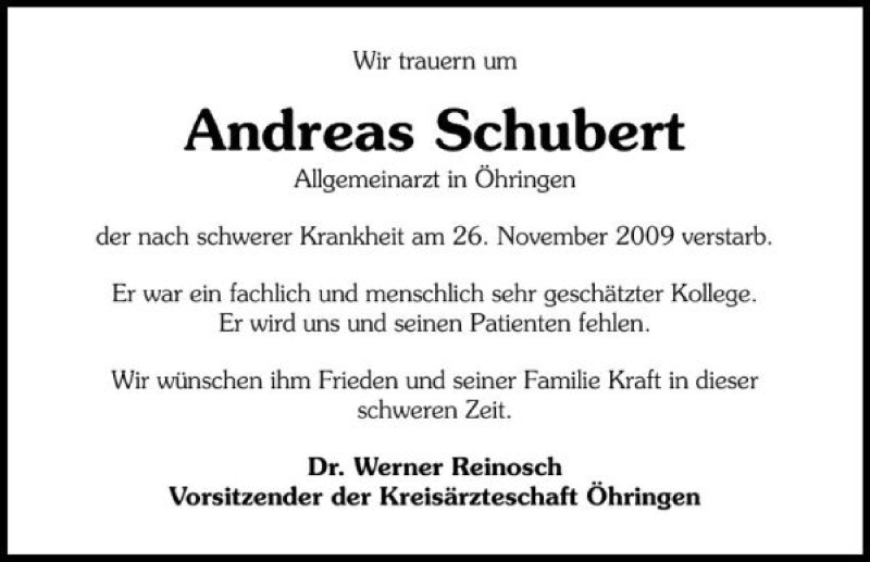 Hier finden Sie alle Traueranzeigen aus der Zeitung, die bisher für Andreas Schubert erschienen sind. Weitere Traueranzeigen, die in der Zeitung erscheinen, werden hier ebenfalls aufgelistet