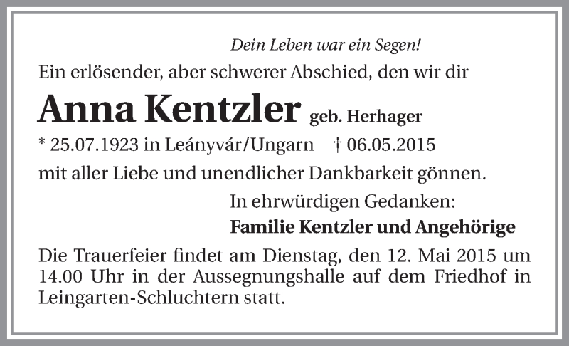 Hier finden Sie alle Traueranzeigen aus der Zeitung, die bisher für Anna Kentzler erschienen sind. Weitere Traueranzeigen, die in der Zeitung erscheinen, werden hier ebenfalls aufgelistet