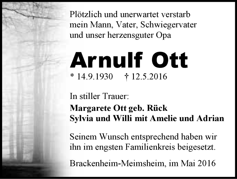 Hier finden Sie alle Traueranzeigen aus der Zeitung, die bisher für Arnulf Ott erschienen sind. Weitere Traueranzeigen, die in der Zeitung erscheinen, werden hier ebenfalls aufgelistet