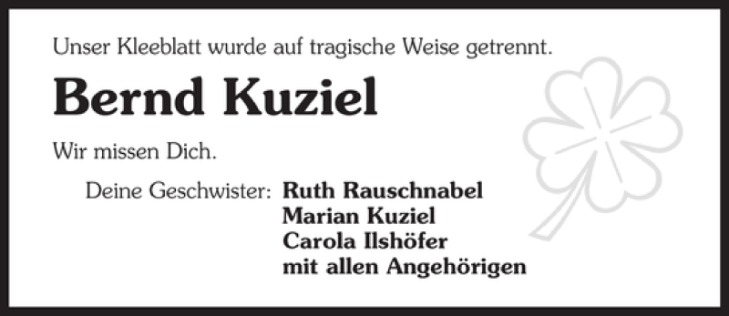 Hier finden Sie alle Traueranzeigen aus der Zeitung, die bisher für Bernd Koziel erschienen sind. Weitere Traueranzeigen, die in der Zeitung erscheinen, werden hier ebenfalls aufgelistet