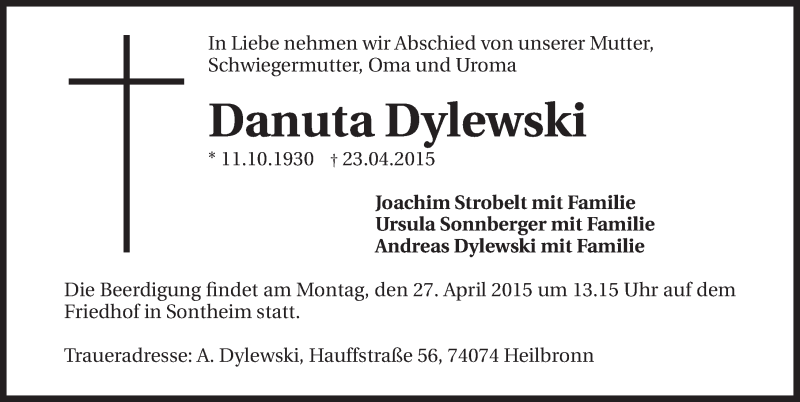 Hier finden Sie alle Traueranzeigen aus der Zeitung, die bisher für Danuta Dylewski erschienen sind. Weitere Traueranzeigen, die in der Zeitung erscheinen, werden hier ebenfalls aufgelistet