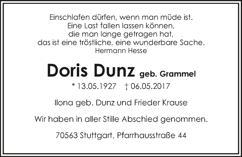 Hier finden Sie alle Traueranzeigen aus der Zeitung, die bisher für Doris Dunz erschienen sind. Weitere Traueranzeigen, die in der Zeitung erscheinen, werden hier ebenfalls aufgelistet