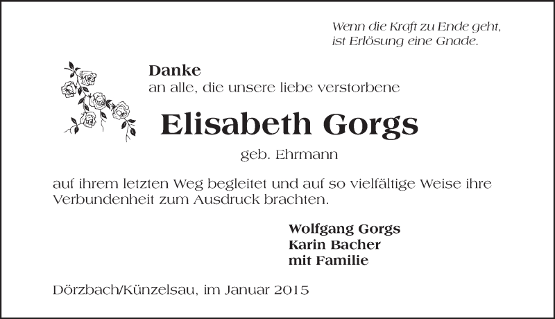 Hier finden Sie alle Traueranzeigen aus der Zeitung, die bisher für Elisabeth Gorgs erschienen sind. Weitere Traueranzeigen, die in der Zeitung erscheinen, werden hier ebenfalls aufgelistet