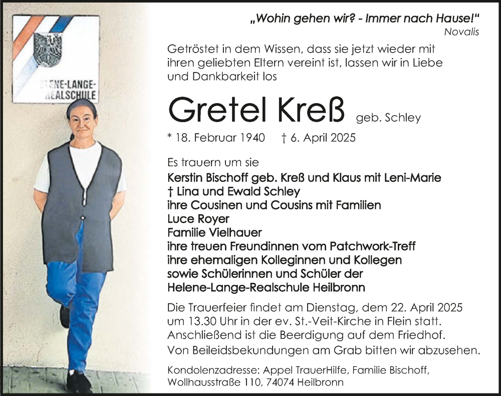 Hier finden Sie alle Traueranzeigen aus der Zeitung, die bisher für Gretel Kreß erschienen sind. Weitere Traueranzeigen, die in der Zeitung erscheinen, werden hier ebenfalls aufgelistet