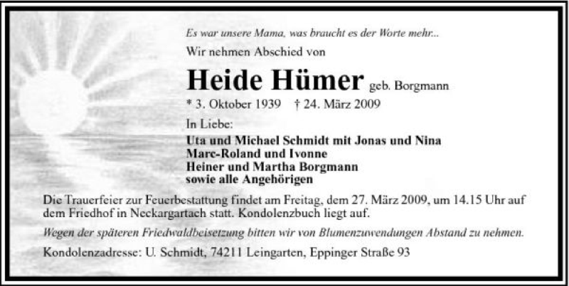 Hier finden Sie alle Traueranzeigen aus der Zeitung, die bisher für Heide Hümer erschienen sind. Weitere Traueranzeigen, die in der Zeitung erscheinen, werden hier ebenfalls aufgelistet