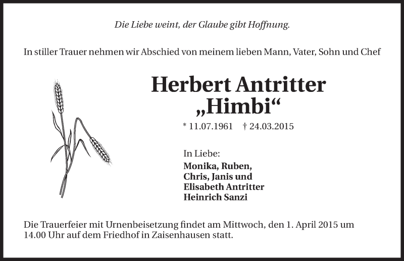 Hier finden Sie alle Traueranzeigen aus der Zeitung, die bisher für Herbert Antritter erschienen sind. Weitere Traueranzeigen, die in der Zeitung erscheinen, werden hier ebenfalls aufgelistet