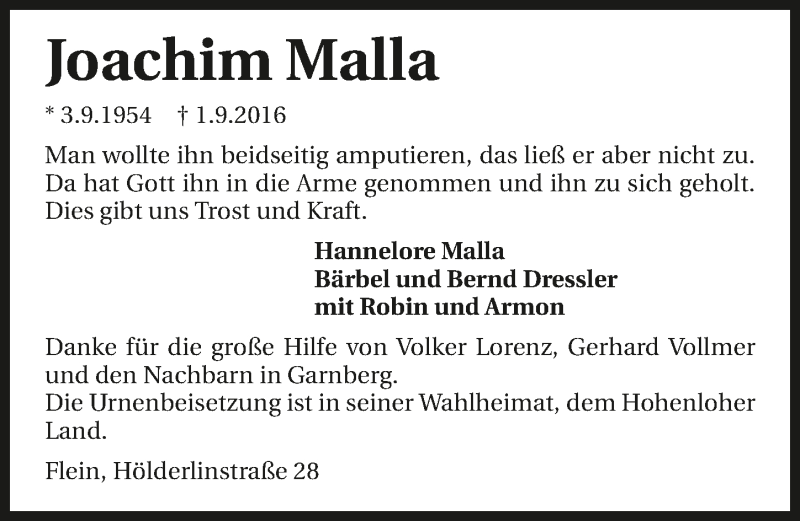 Hier finden Sie alle Traueranzeigen aus der Zeitung, die bisher für Joachim Malla erschienen sind. Weitere Traueranzeigen, die in der Zeitung erscheinen, werden hier ebenfalls aufgelistet
