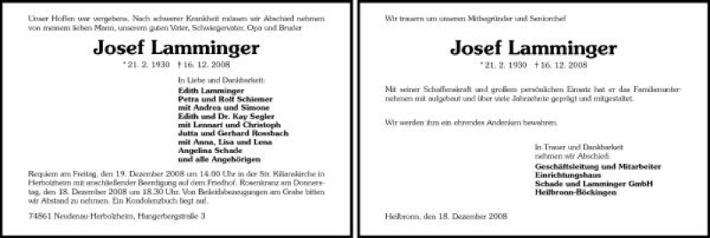 Hier finden Sie alle Traueranzeigen aus der Zeitung, die bisher für Josef 2 Anteile Lamminger erschienen sind. Weitere Traueranzeigen, die in der Zeitung erscheinen, werden hier ebenfalls aufgelistet