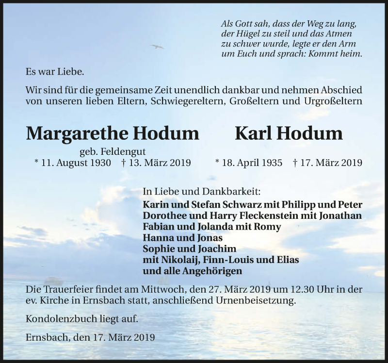 Hier finden Sie alle Traueranzeigen aus der Zeitung, die bisher für Karl Hodum erschienen sind. Weitere Traueranzeigen, die in der Zeitung erscheinen, werden hier ebenfalls aufgelistet