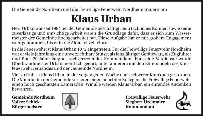 Hier finden Sie alle Traueranzeigen aus der Zeitung, die bisher für Klaus Urban erschienen sind. Weitere Traueranzeigen, die in der Zeitung erscheinen, werden hier ebenfalls aufgelistet