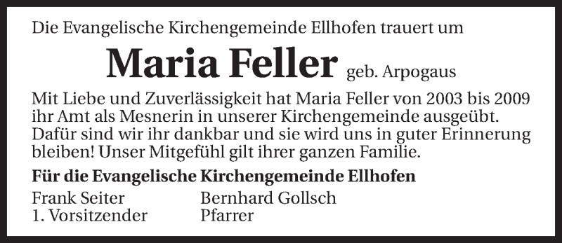 Hier finden Sie alle Traueranzeigen aus der Zeitung, die bisher für Maria Feller erschienen sind. Weitere Traueranzeigen, die in der Zeitung erscheinen, werden hier ebenfalls aufgelistet