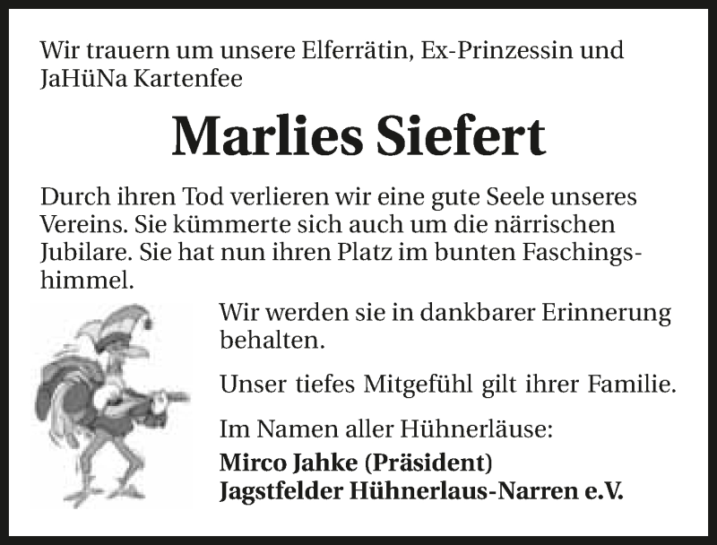 Hier finden Sie alle Traueranzeigen aus der Zeitung, die bisher für Marlies Siefert erschienen sind. Weitere Traueranzeigen, die in der Zeitung erscheinen, werden hier ebenfalls aufgelistet