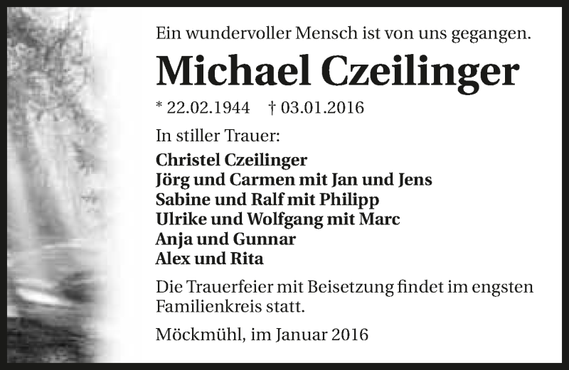 Hier finden Sie alle Traueranzeigen aus der Zeitung, die bisher für Michael Czeilinger erschienen sind. Weitere Traueranzeigen, die in der Zeitung erscheinen, werden hier ebenfalls aufgelistet