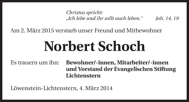 Hier finden Sie alle Traueranzeigen aus der Zeitung, die bisher für Norbert Schoch erschienen sind. Weitere Traueranzeigen, die in der Zeitung erscheinen, werden hier ebenfalls aufgelistet