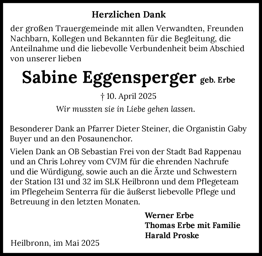 Hier finden Sie alle Traueranzeigen aus der Zeitung, die bisher für Sabine Eggensperger erschienen sind. Weitere Traueranzeigen, die in der Zeitung erscheinen, werden hier ebenfalls aufgelistet