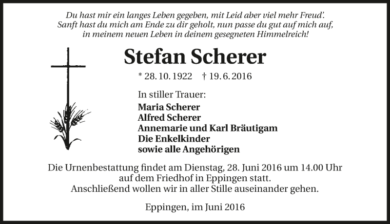 Hier finden Sie alle Traueranzeigen aus der Zeitung, die bisher für Stefan Scherer erschienen sind. Weitere Traueranzeigen, die in der Zeitung erscheinen, werden hier ebenfalls aufgelistet
