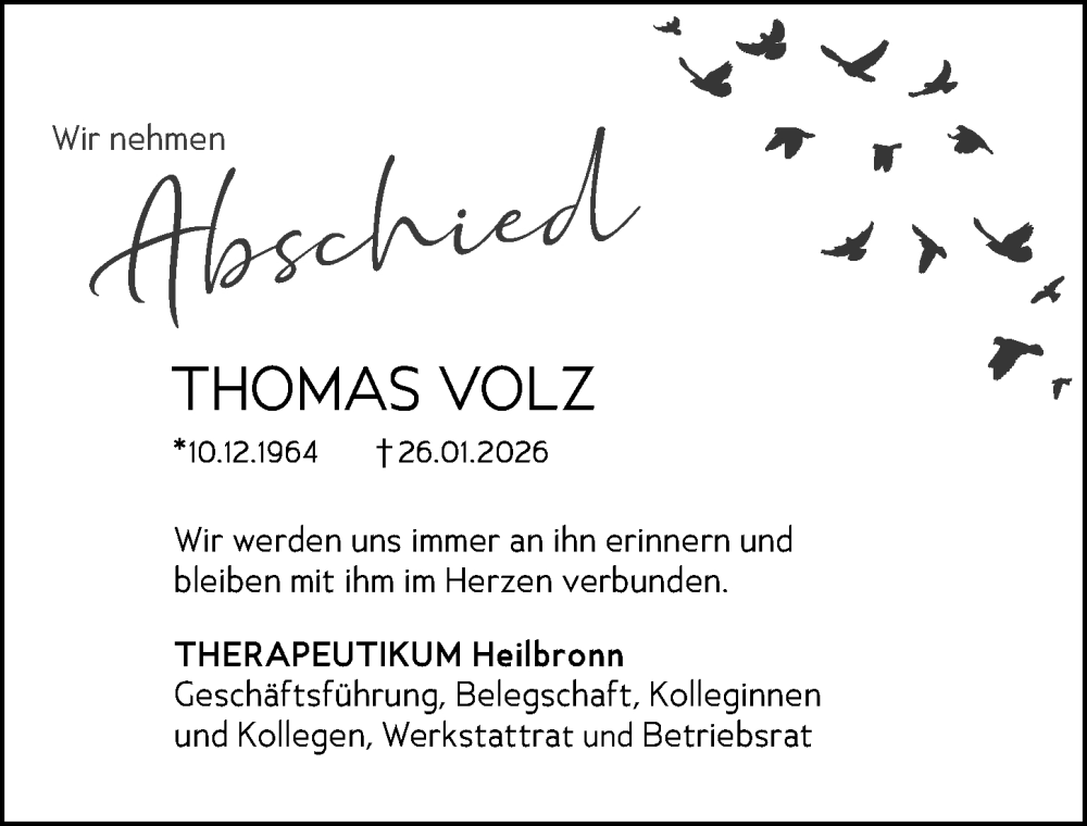 Hier finden Sie alle Traueranzeigen aus der Zeitung, die bisher für Thomas Volz erschienen sind. Weitere Traueranzeigen, die in der Zeitung erscheinen, werden hier ebenfalls aufgelistet