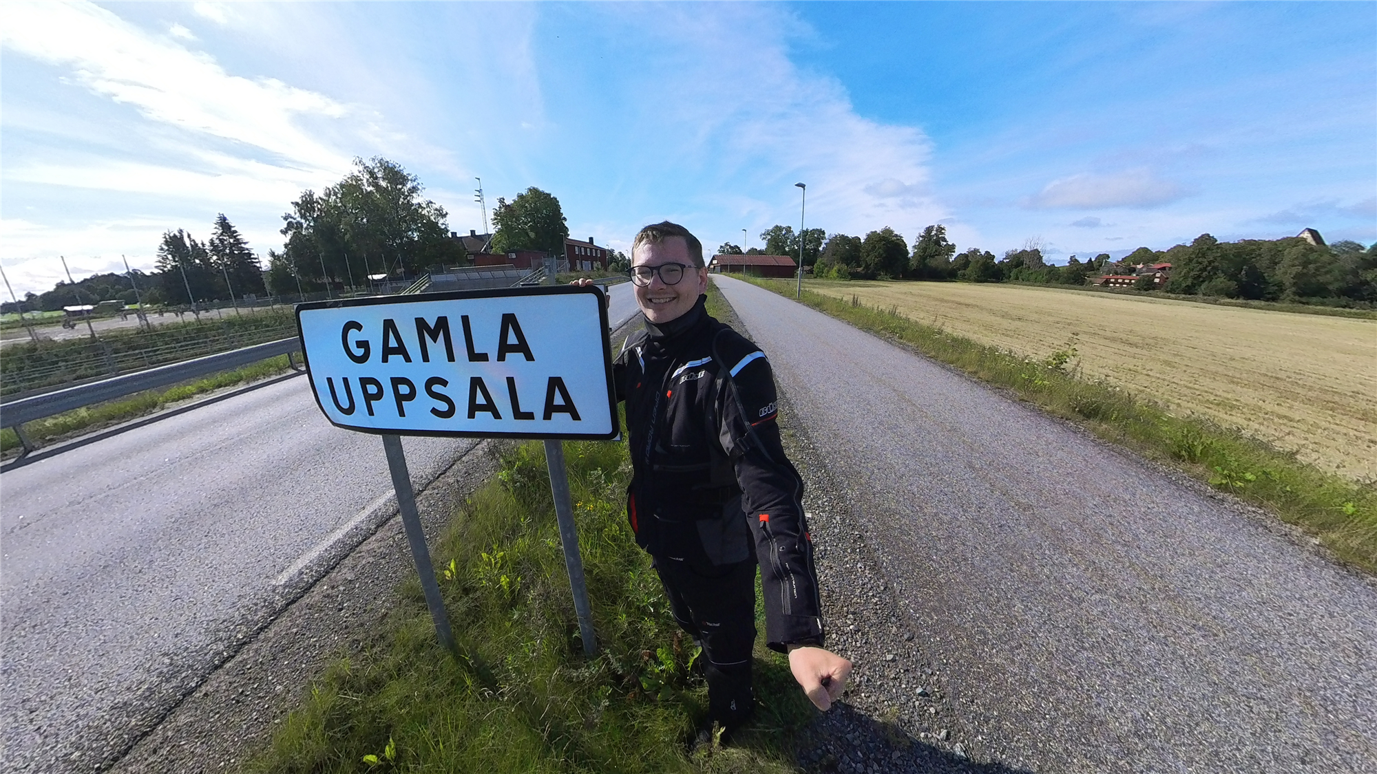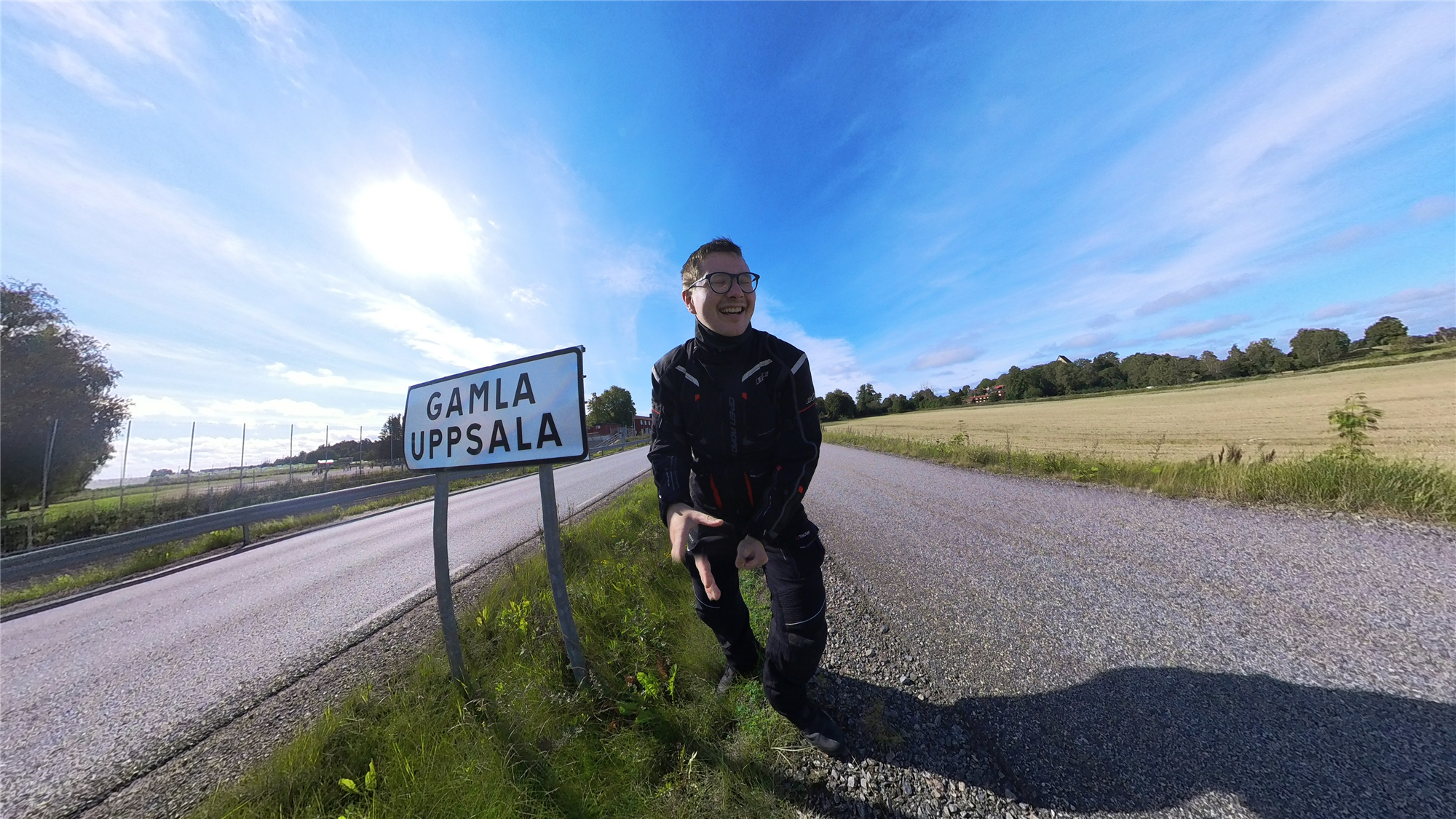 Tobias wollte unbedingt ein Selfie mit dem Ortsschild von Uppsala machen. Er fand den Namen einfach zu lustig. Die Bilder hat er am 29.08. am Vormittag von sich gemacht.