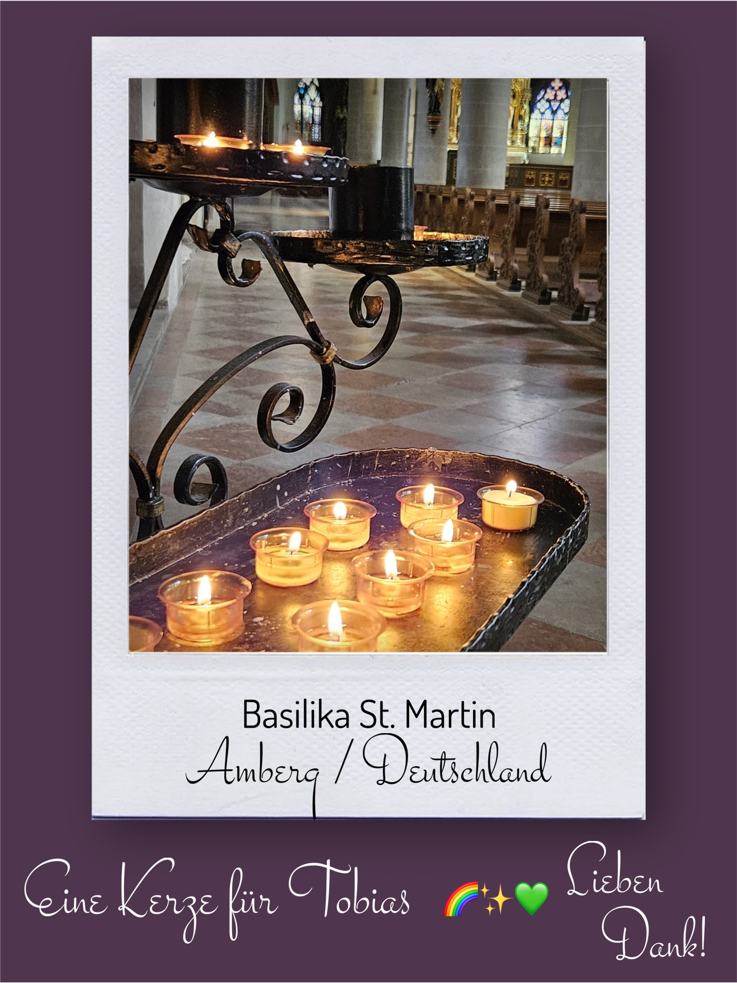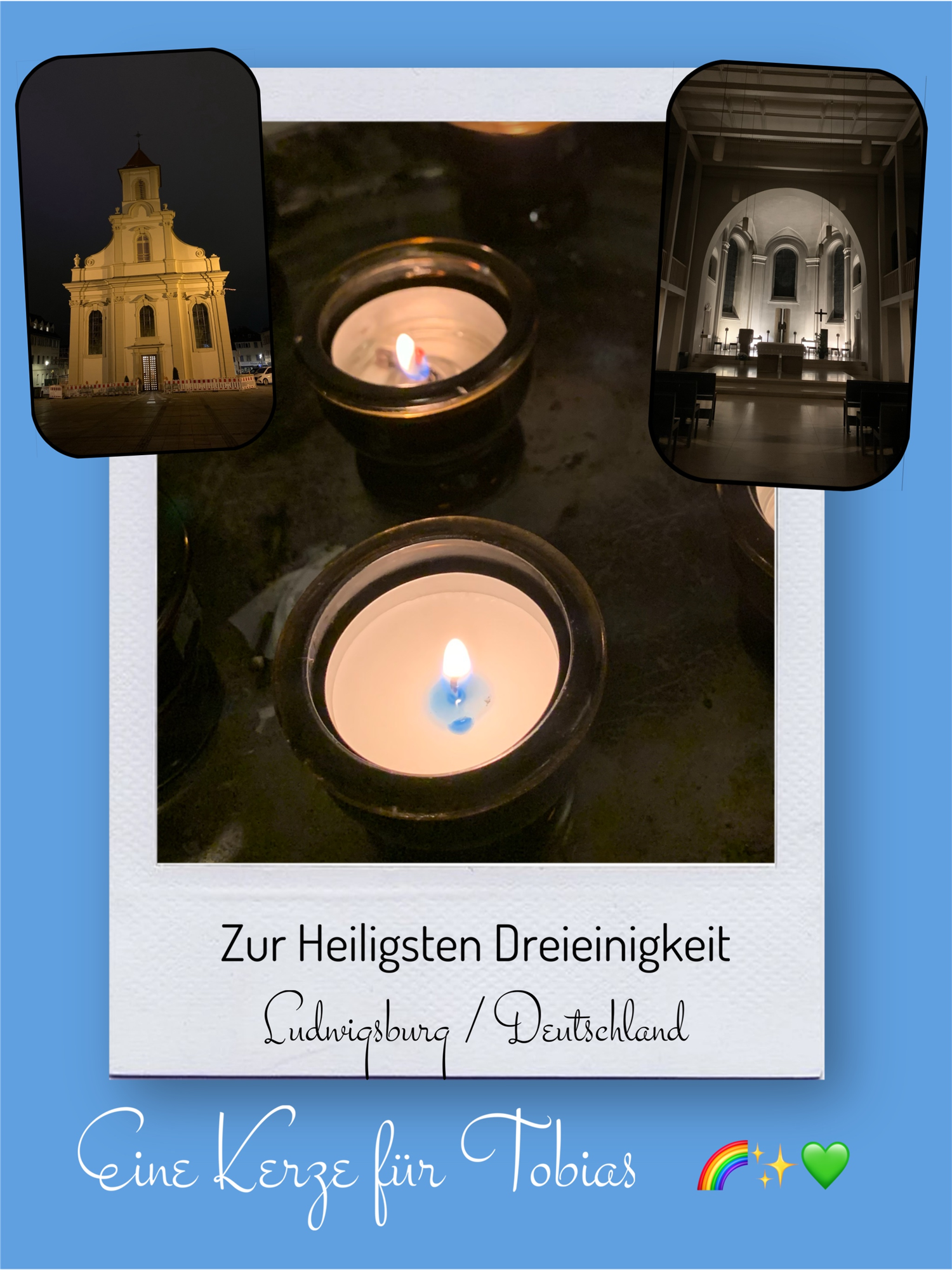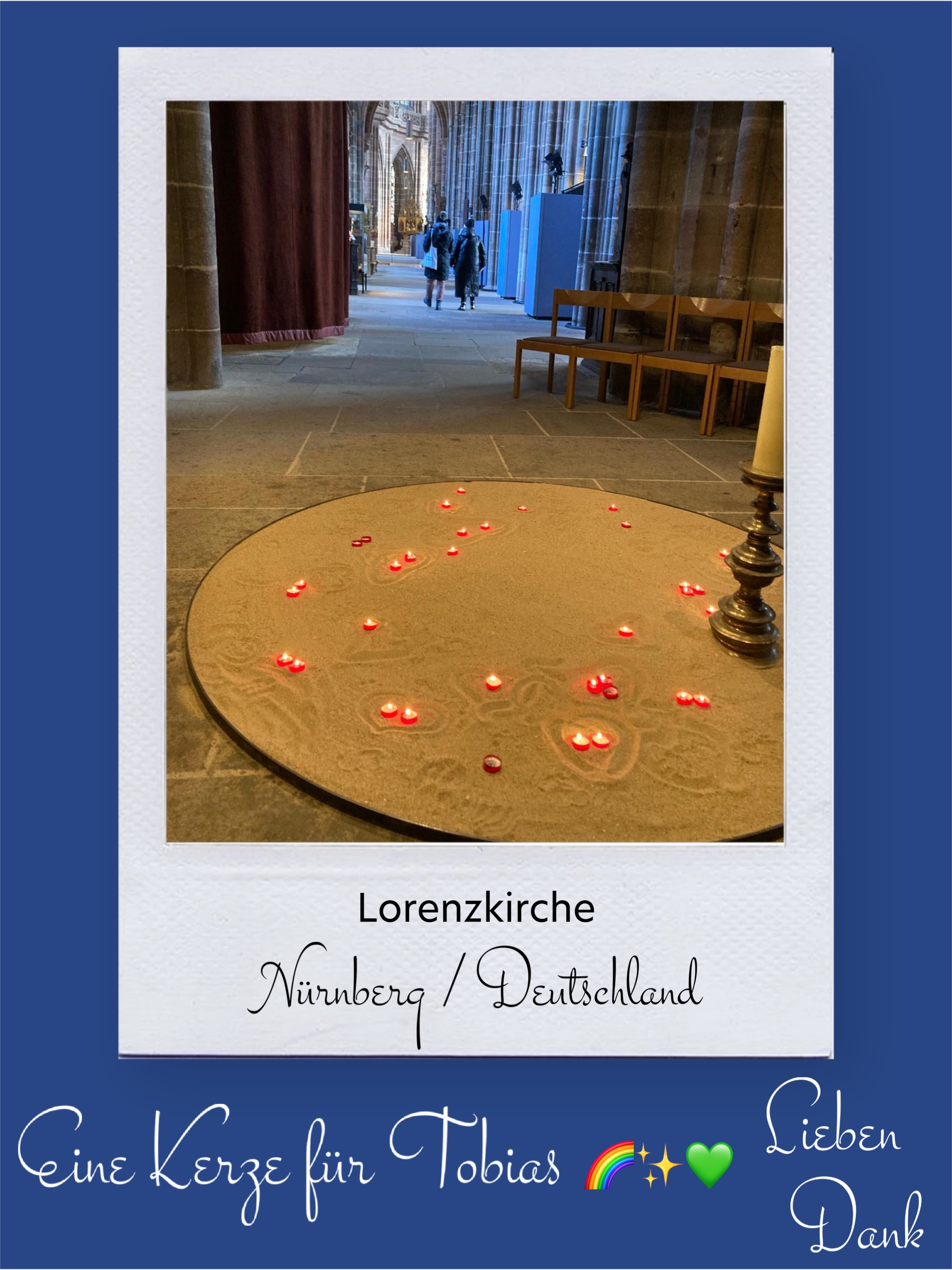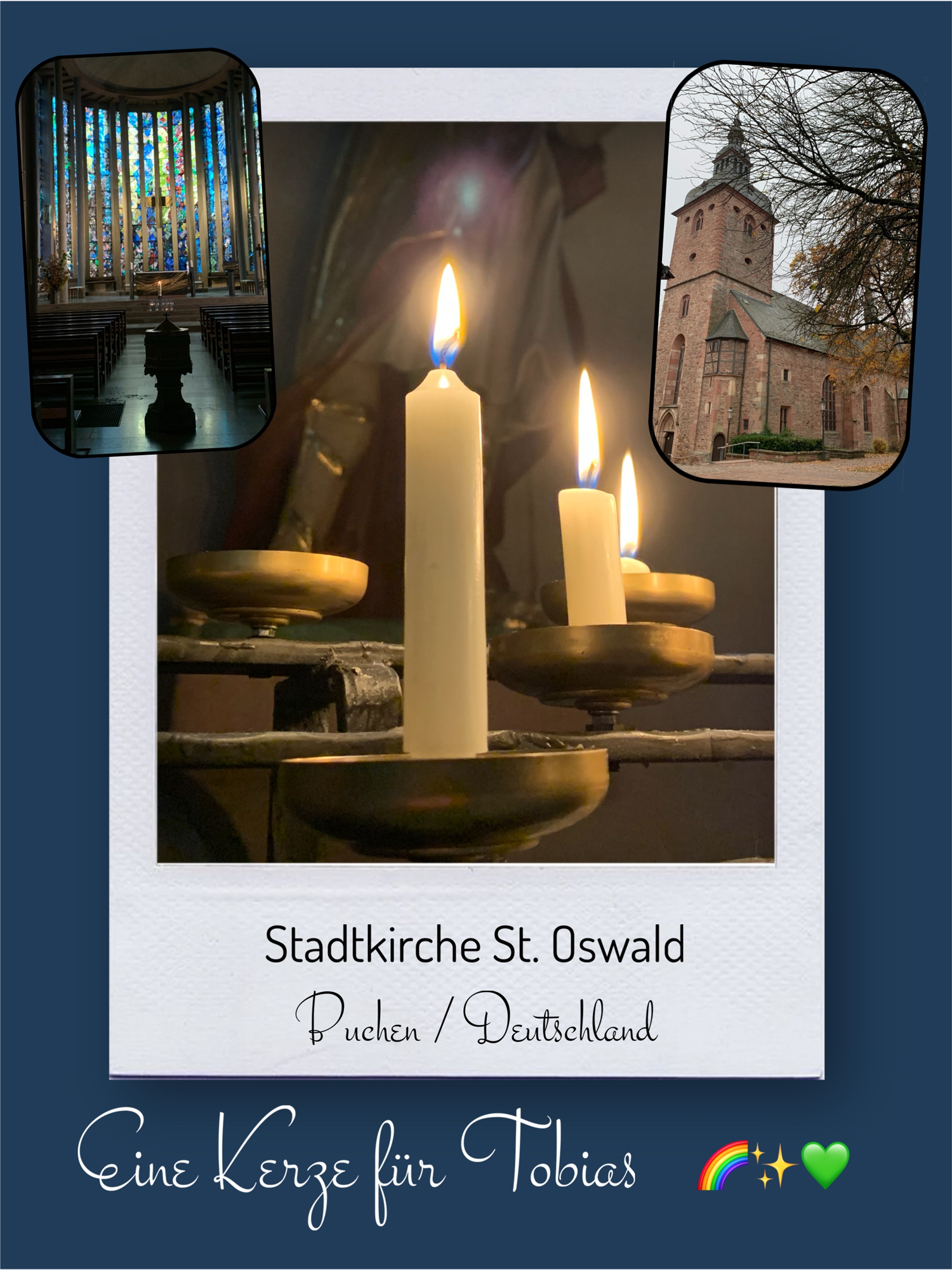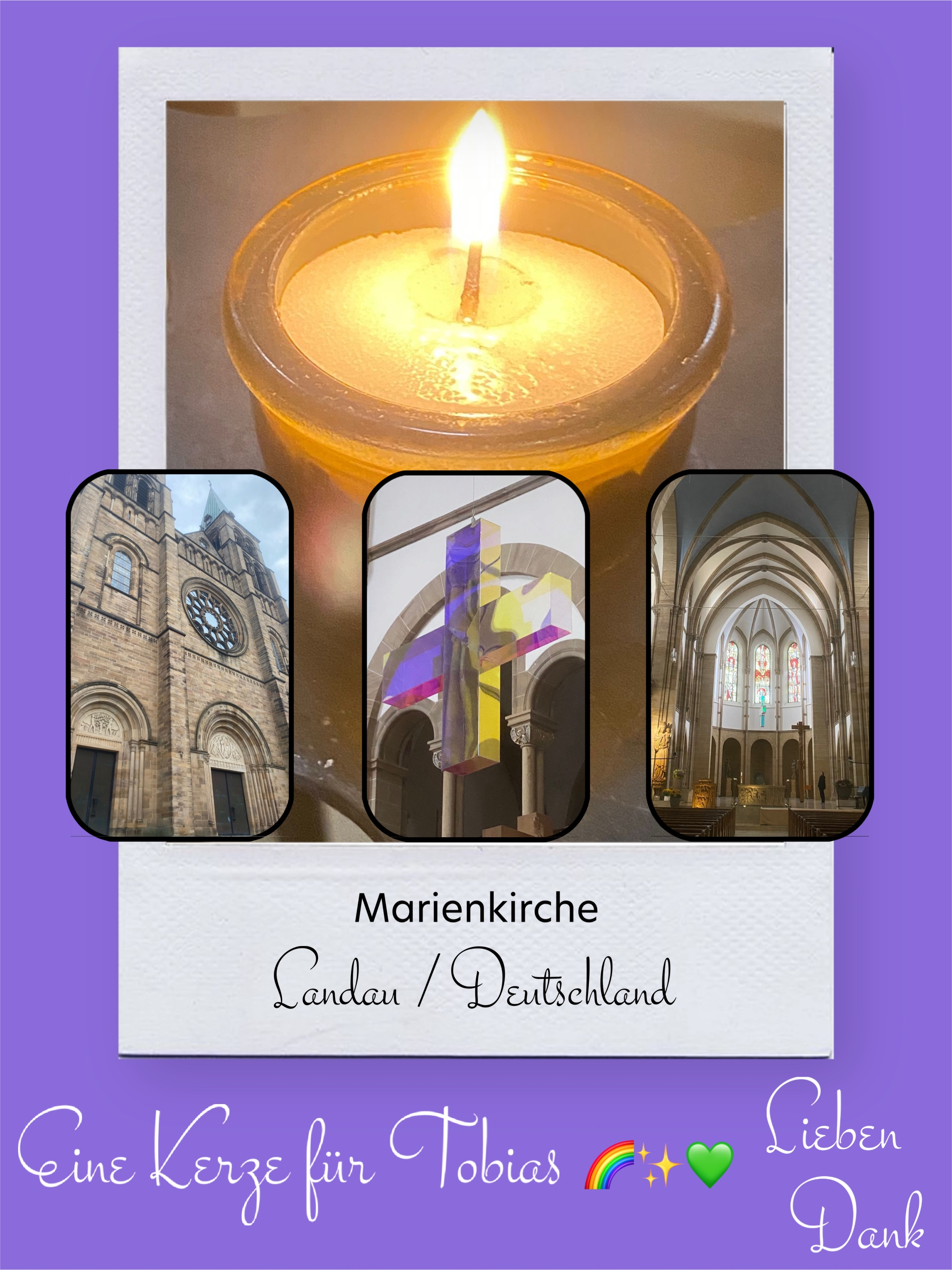 Bildersammlung von Kerzen, die im Namen und Gedenken an Tobias angezündet wurden. Von lieben Verwandten, Freunden, Bekannten und einfach allen Menschen, die Tobias nahe standen und an ihn denken. Herzlichen Dank euch allen! In liebevoller Erinnerung an Tobias