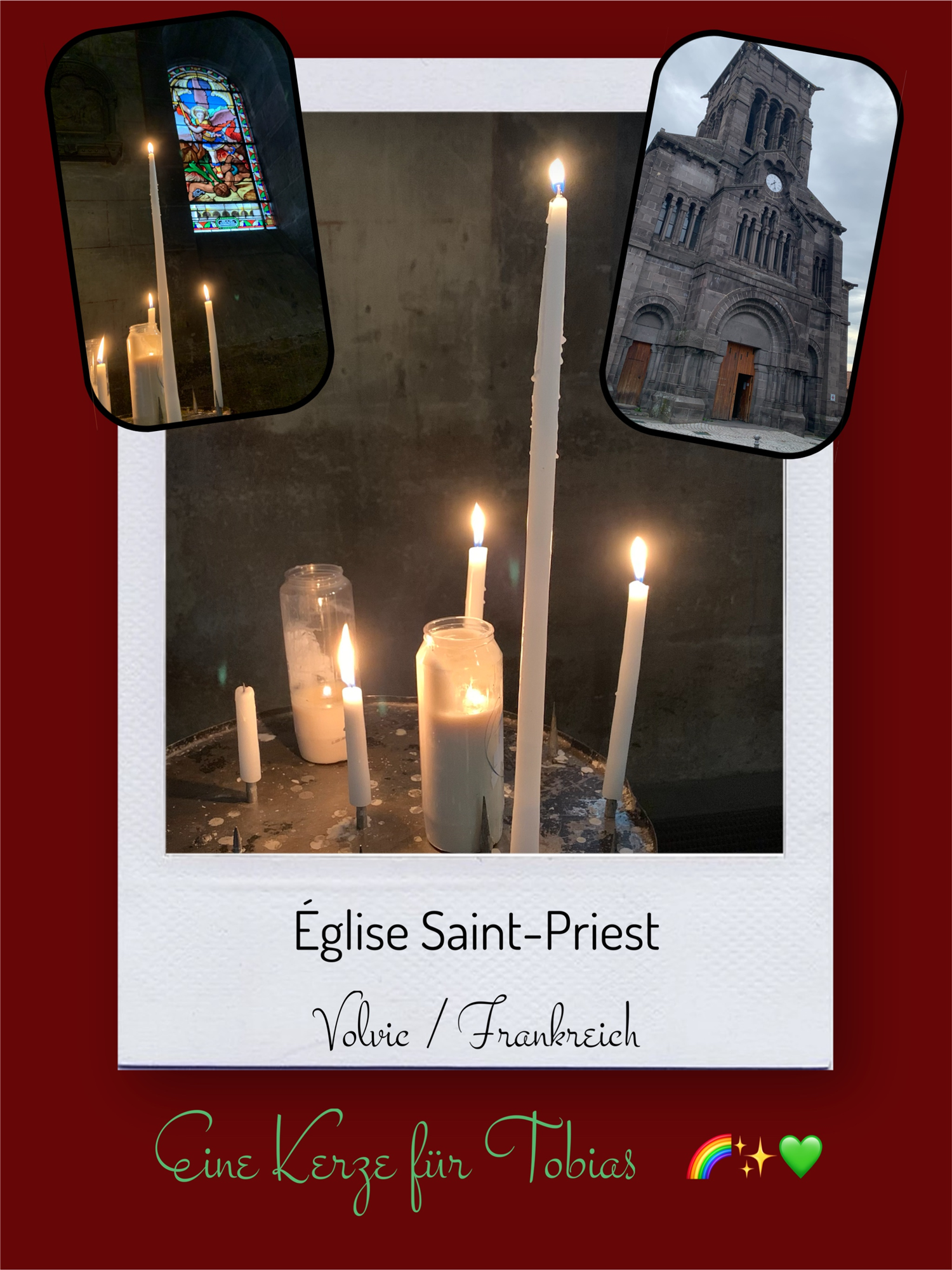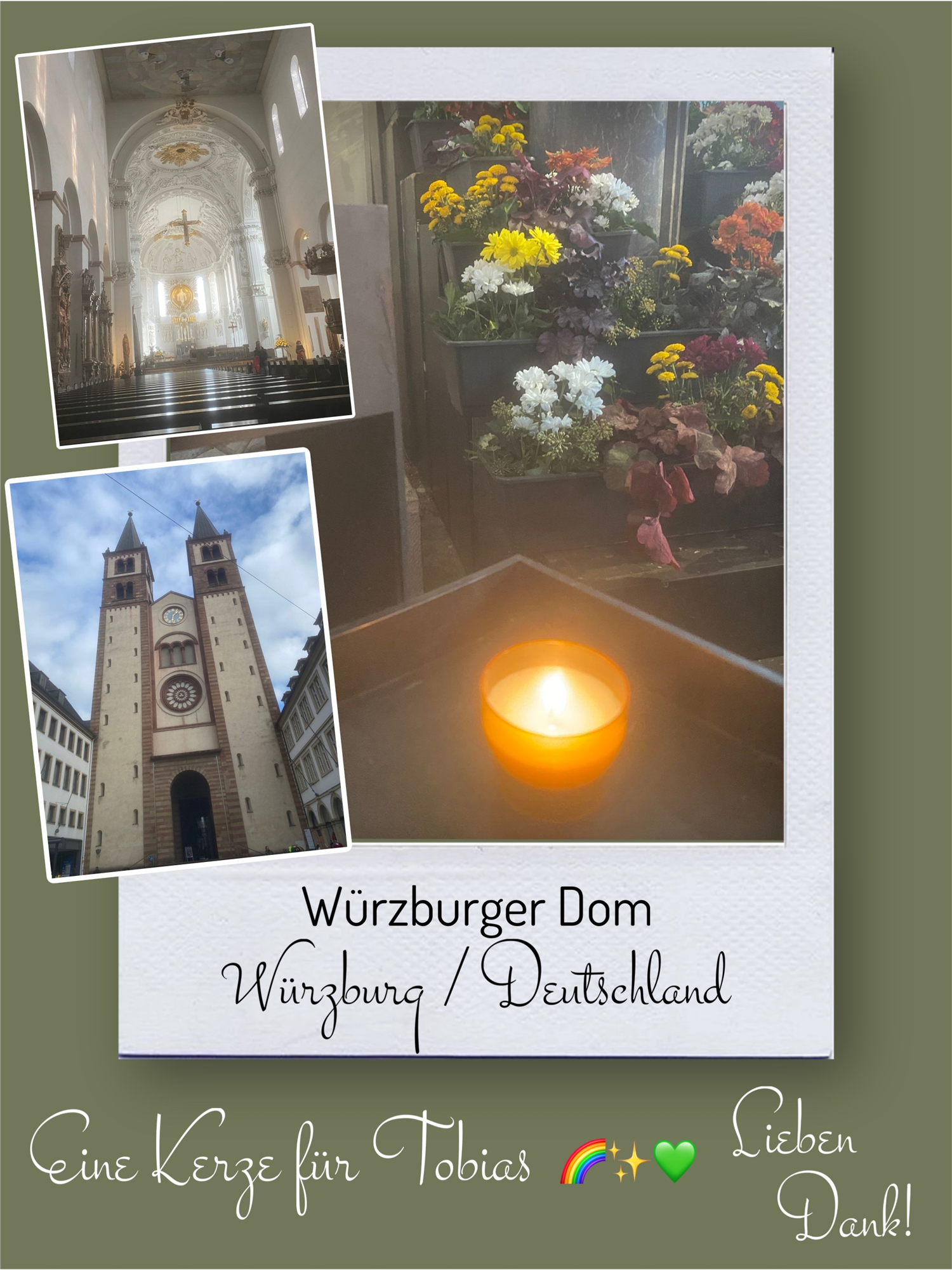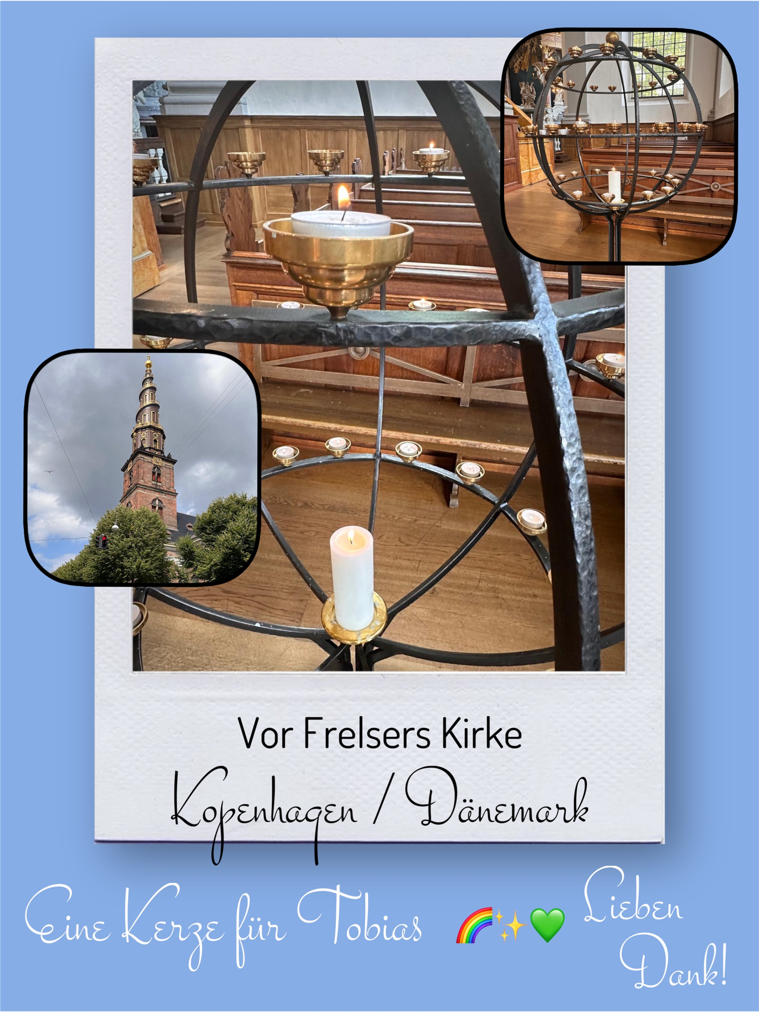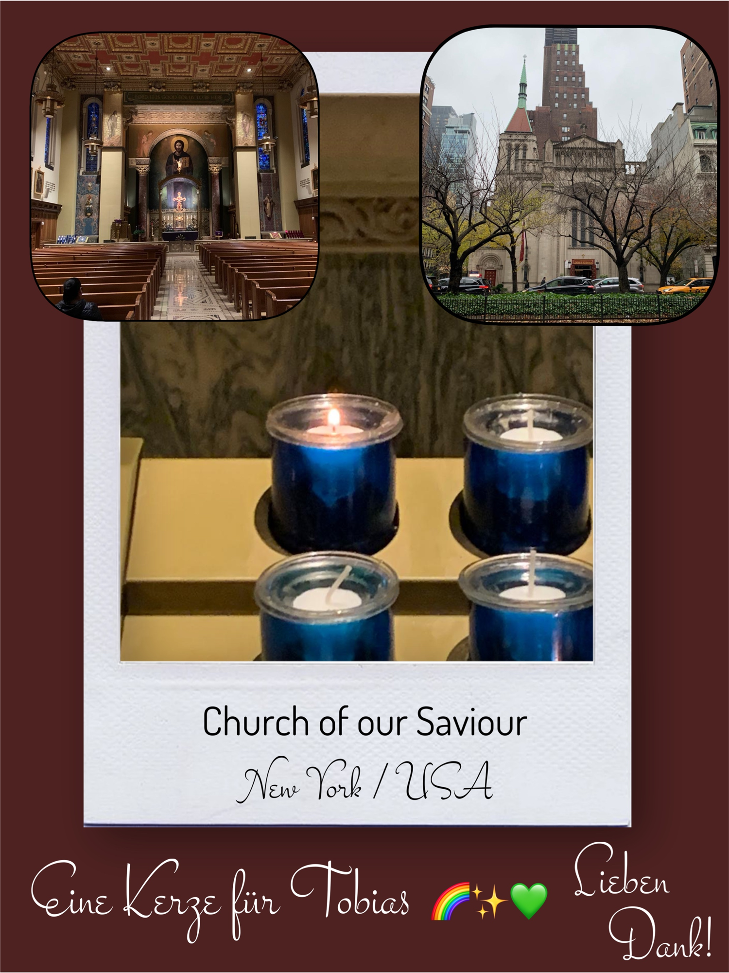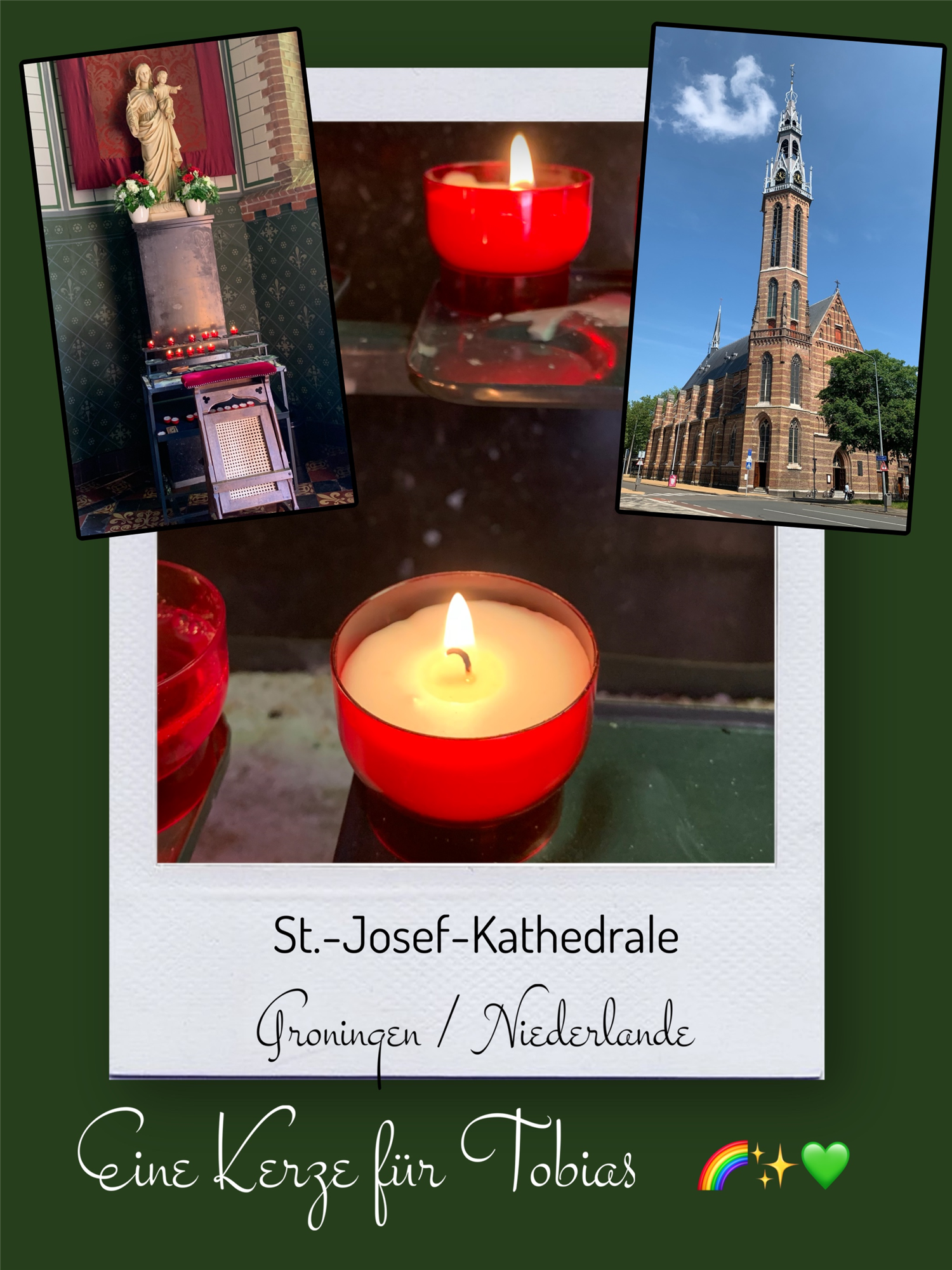 Bildersammlung von Kerzen, die im Namen und Gedenken an Tobias angezündet wurden. Von lieben Verwandten, Freunden, Bekannten und einfach allen Menschen, die Tobias nahe standen und an ihn denken. Herzlichen Dank euch allen! In liebevoller Erinnerung an Tobias