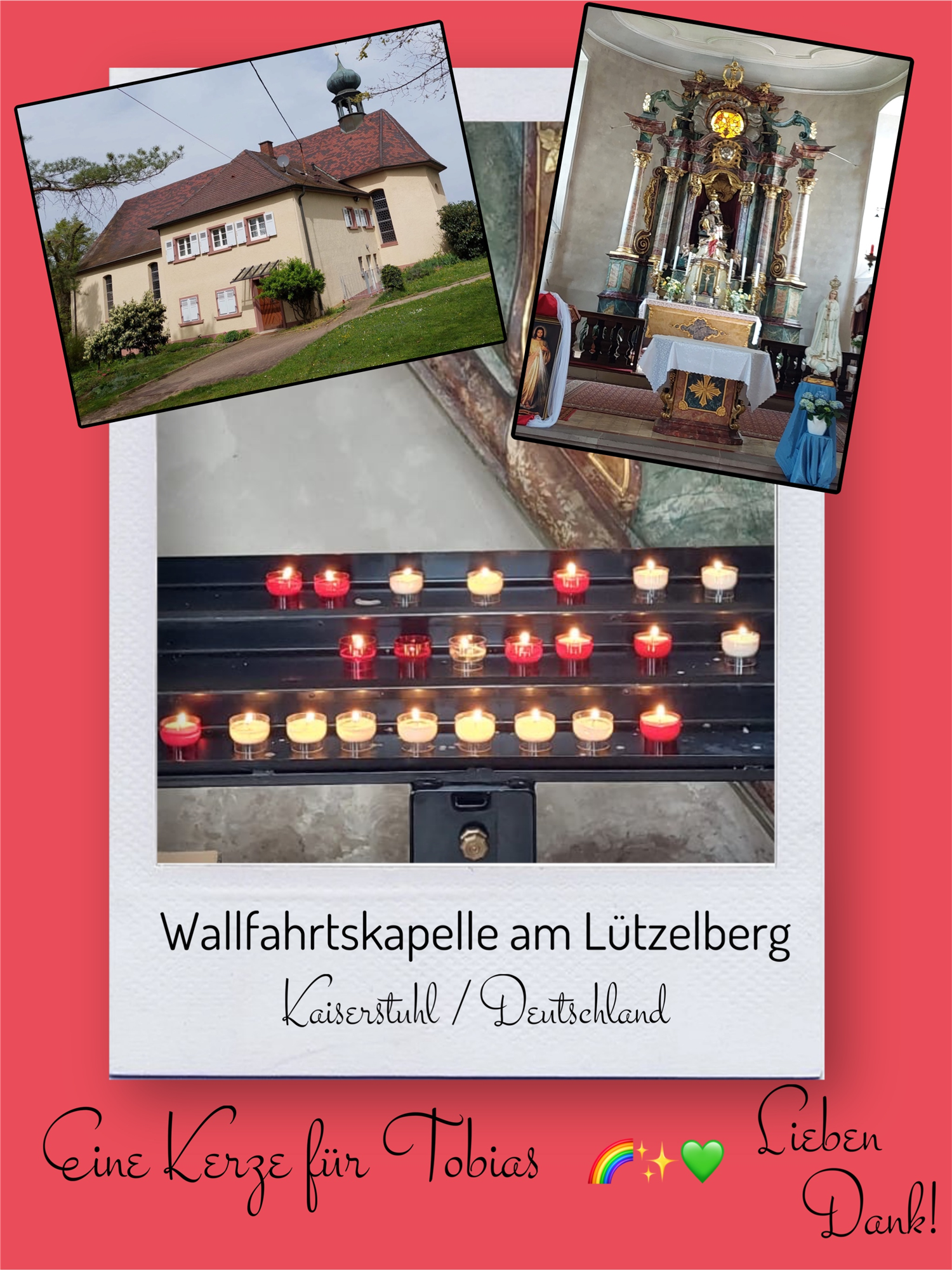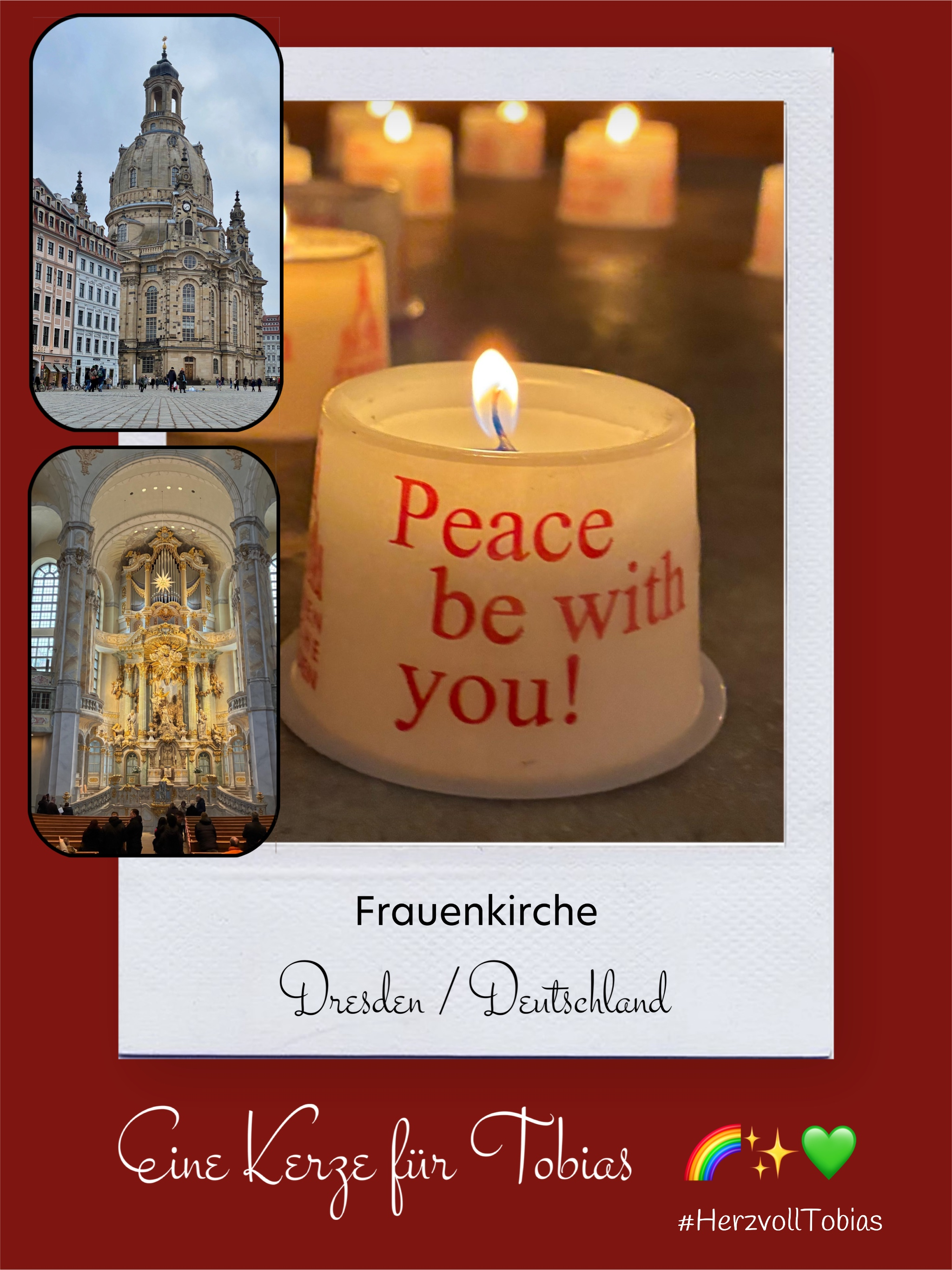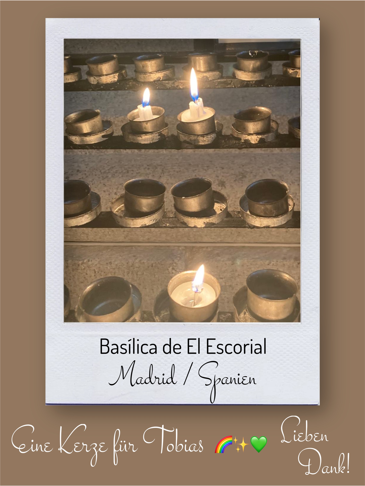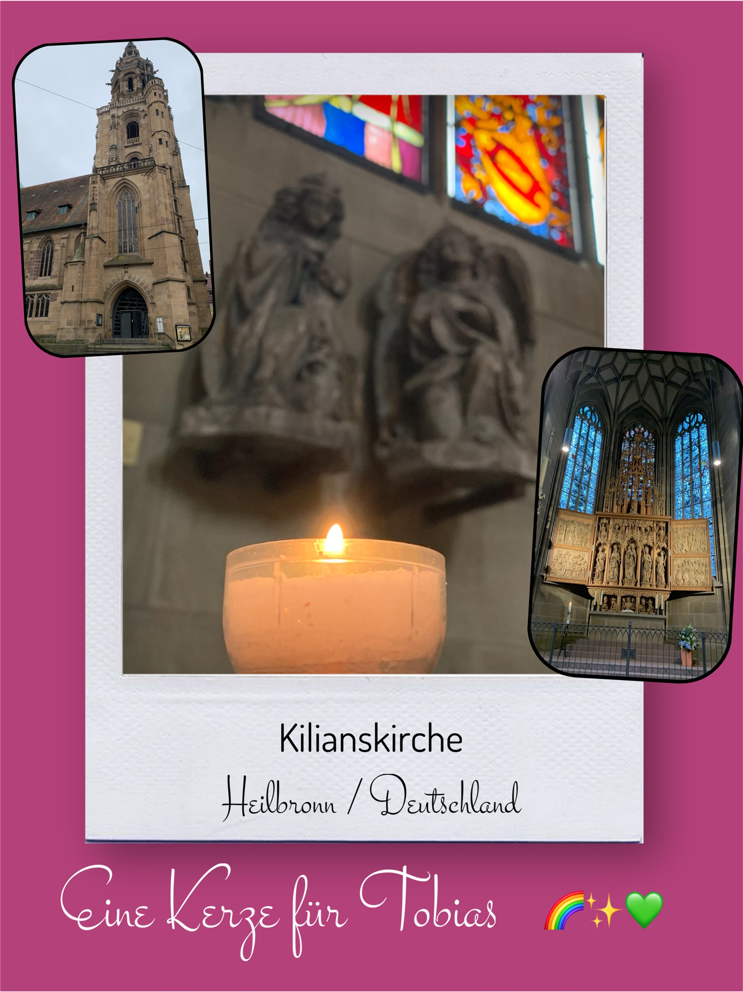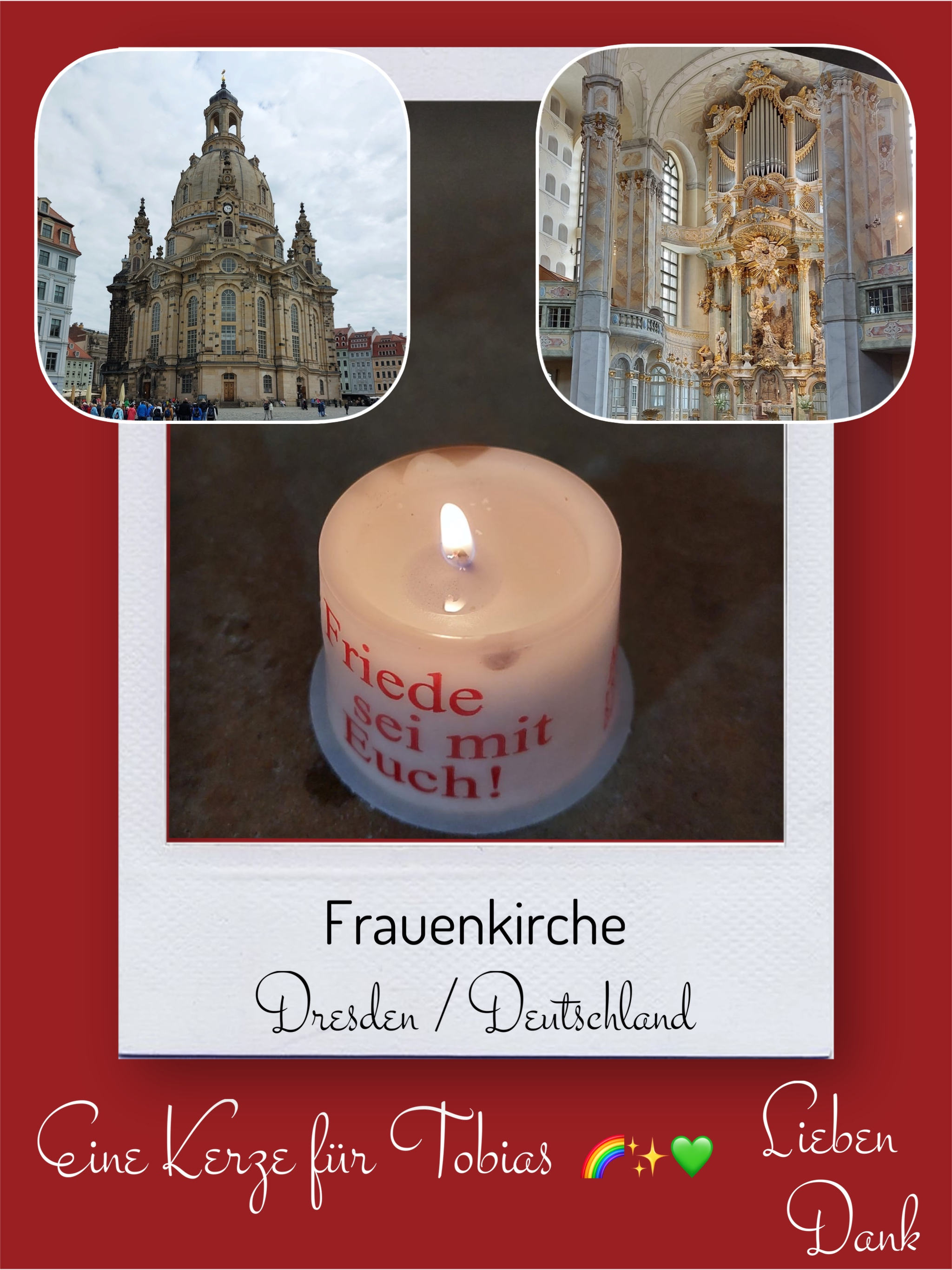Bildersammlung von Kerzen, die im Namen und Gedenken an Tobias angezündet wurden. Von lieben Verwandten, Freunden, Bekannten und einfach allen Menschen, die Tobias nahe standen und an ihn denken. Herzlichen Dank euch allen! In liebevoller Erinnerung an Tobias