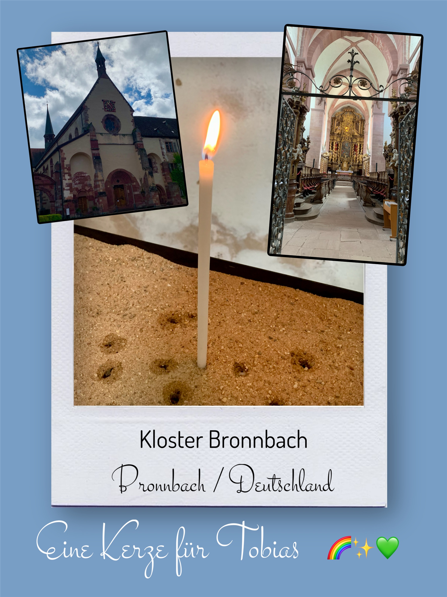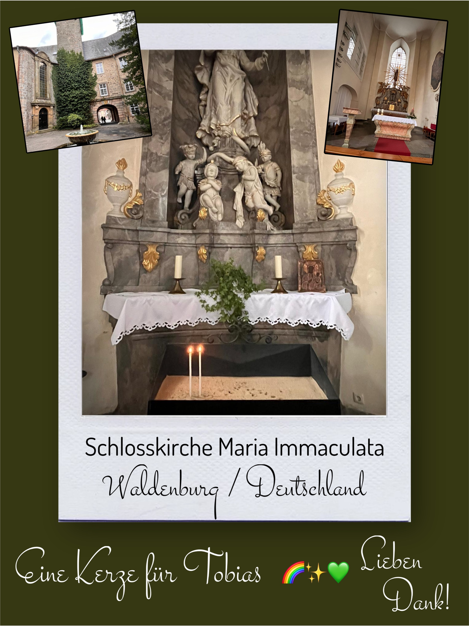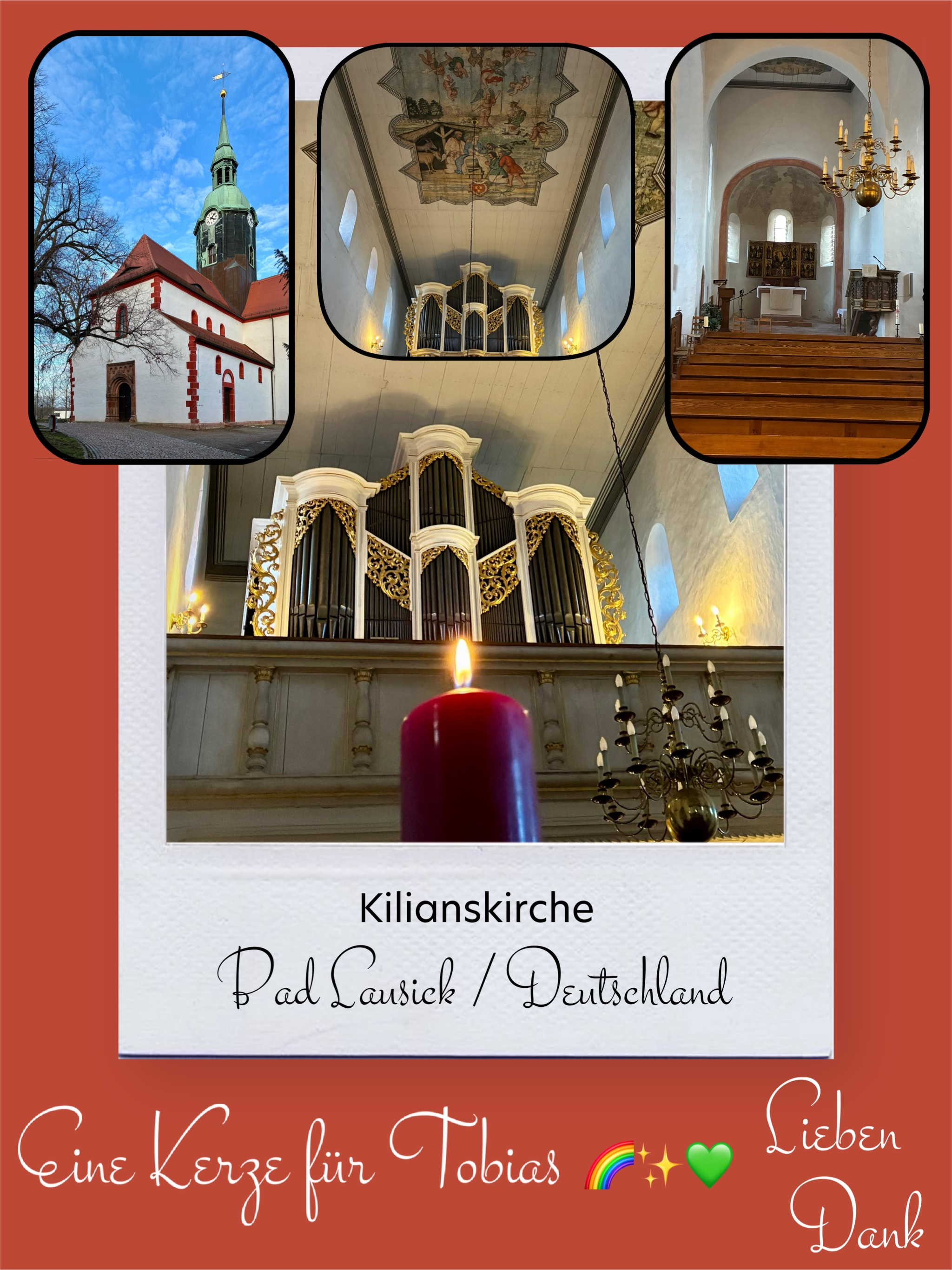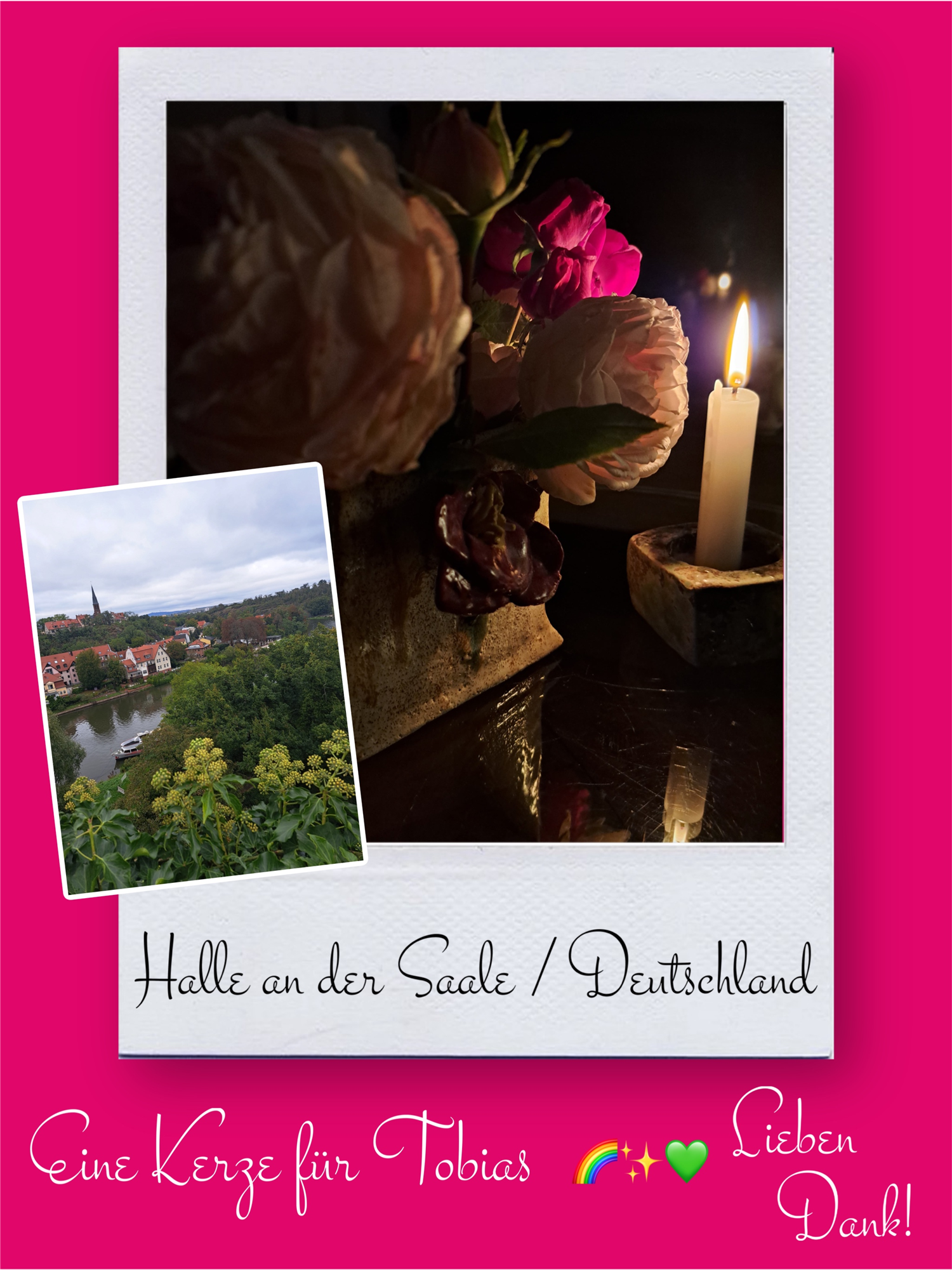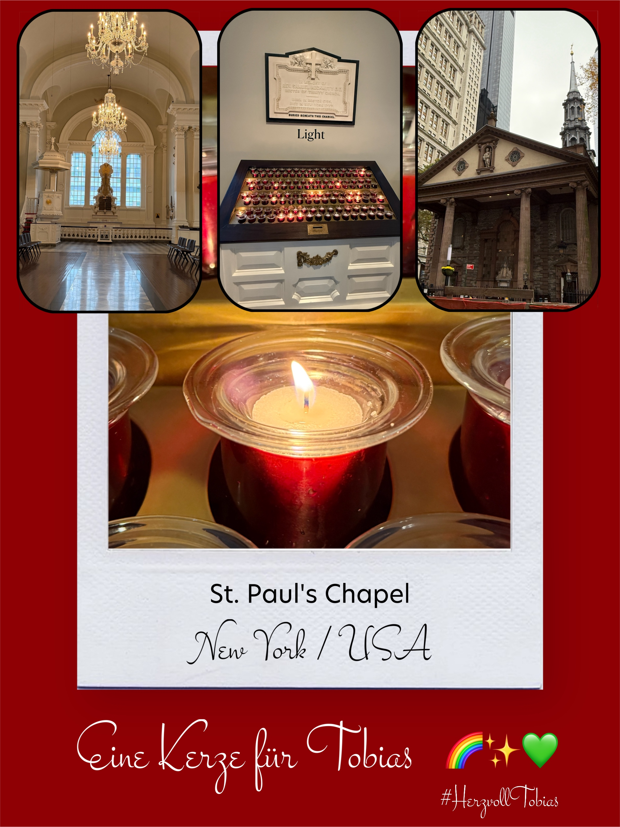 Bildersammlung von Kerzen, die im Namen und Gedenken an Tobias angezündet wurden. Von lieben Verwandten, Freunden, Bekannten und einfach allen Menschen, die Tobias nahe standen und an ihn denken. Herzlichen Dank euch allen! In liebevoller Erinnerung an Tobias