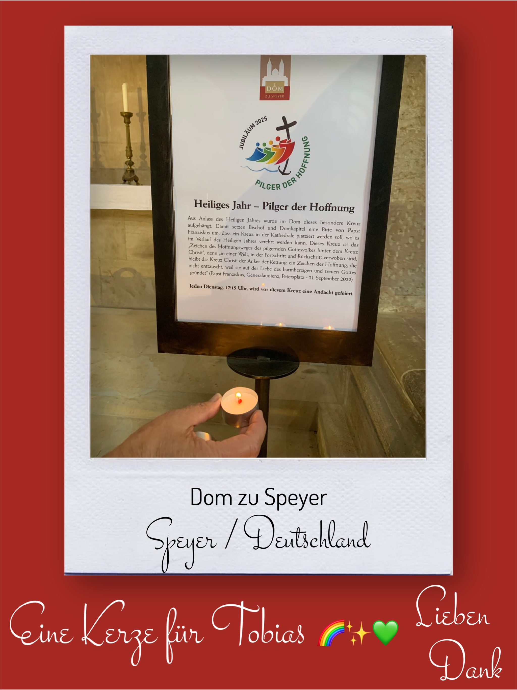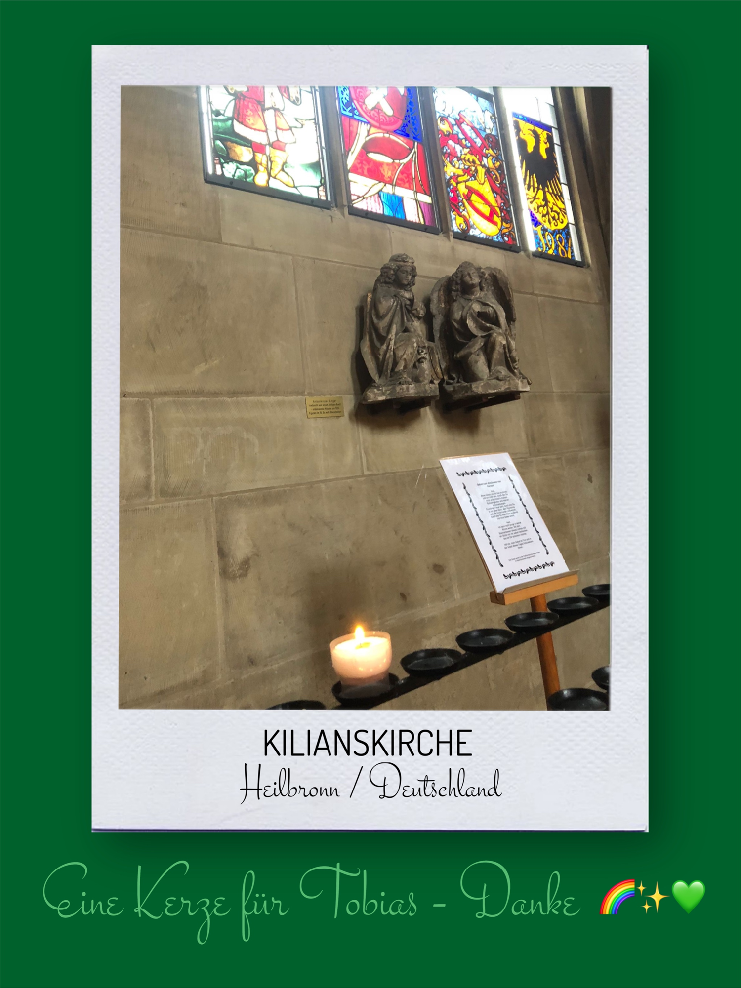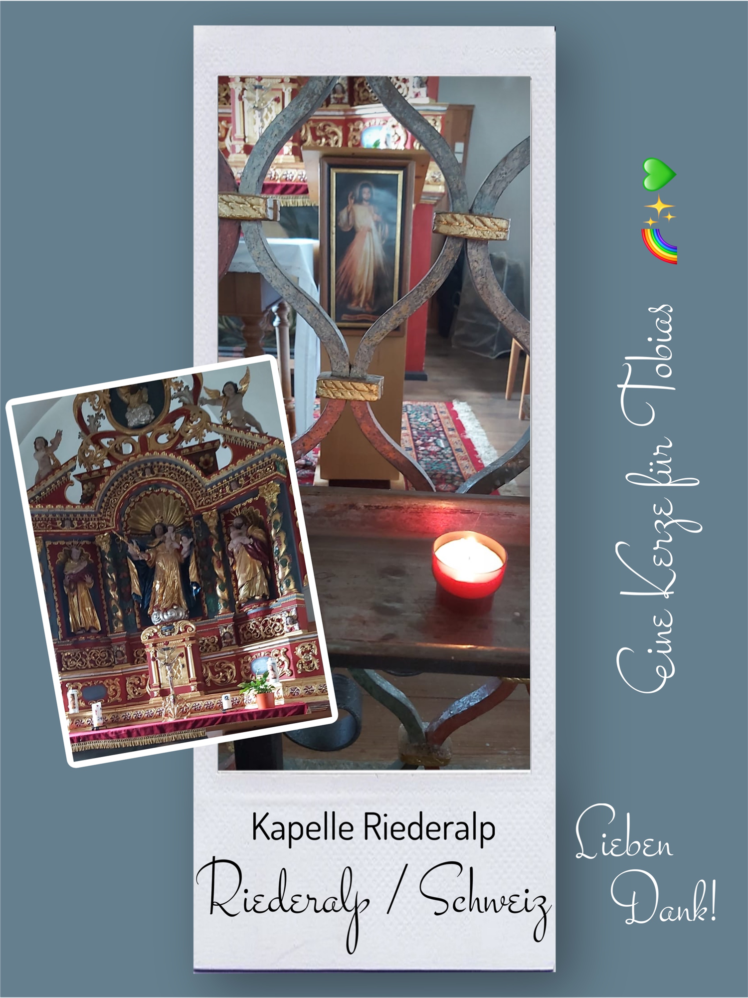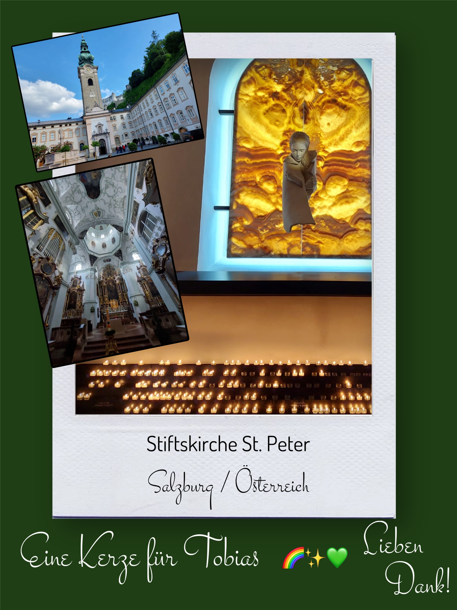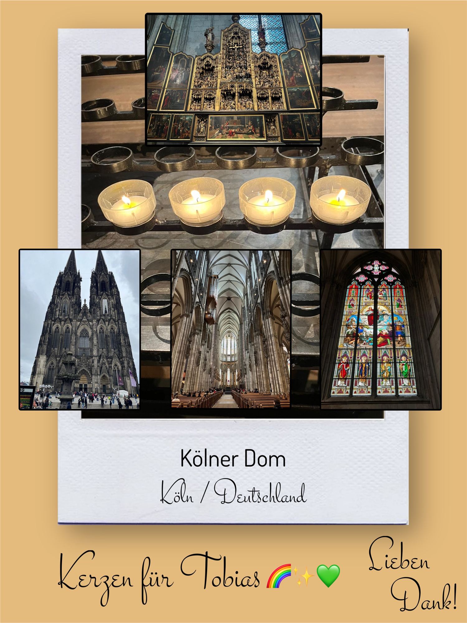 Bildersammlung von Kerzen, die im Namen und Gedenken an Tobias angezündet wurden. Von lieben Verwandten, Freunden, Bekannten und einfach allen Menschen, die Tobias nahe standen und an ihn denken. Herzlichen Dank euch allen! In liebevoller Erinnerung an Tobias