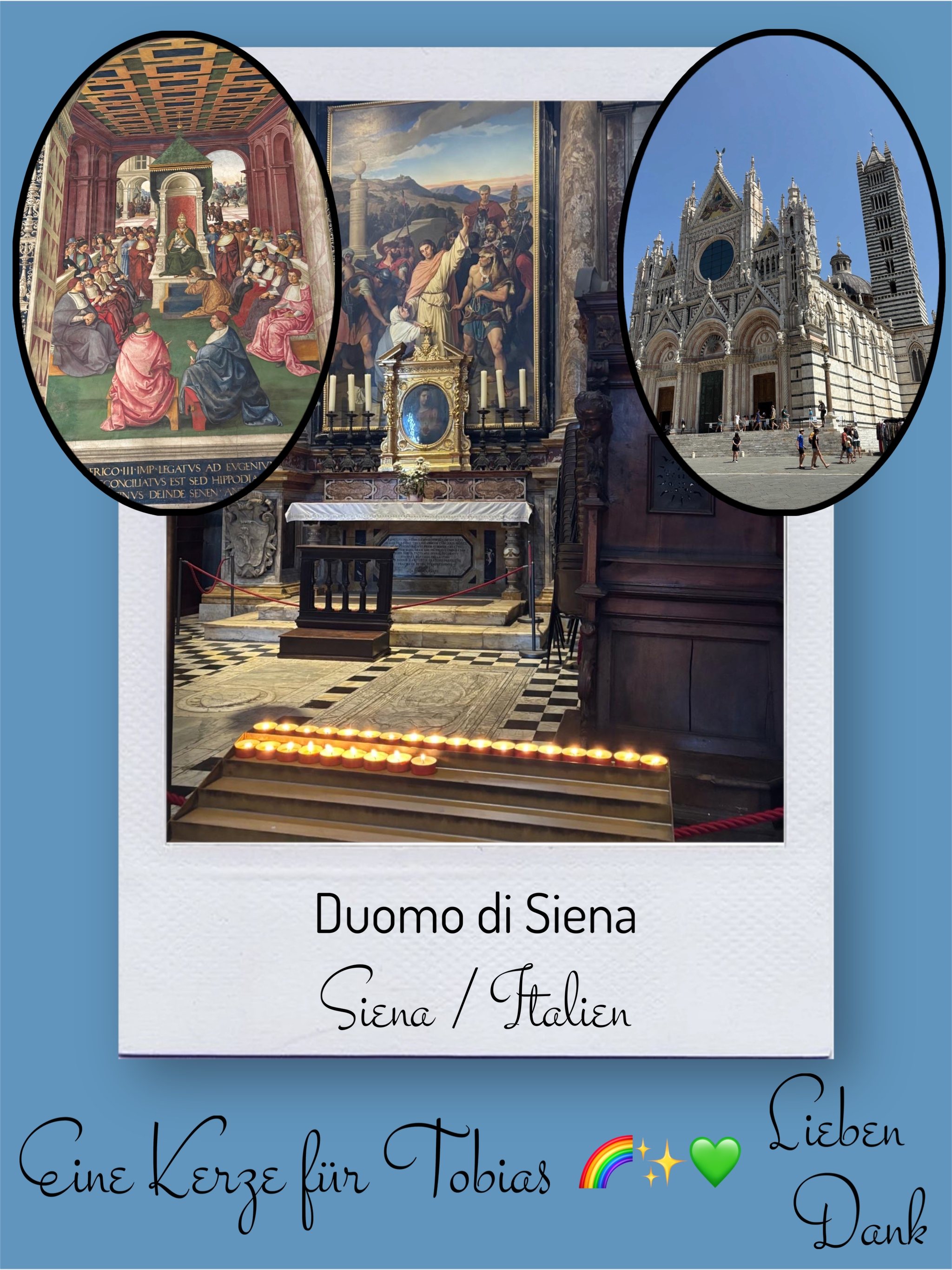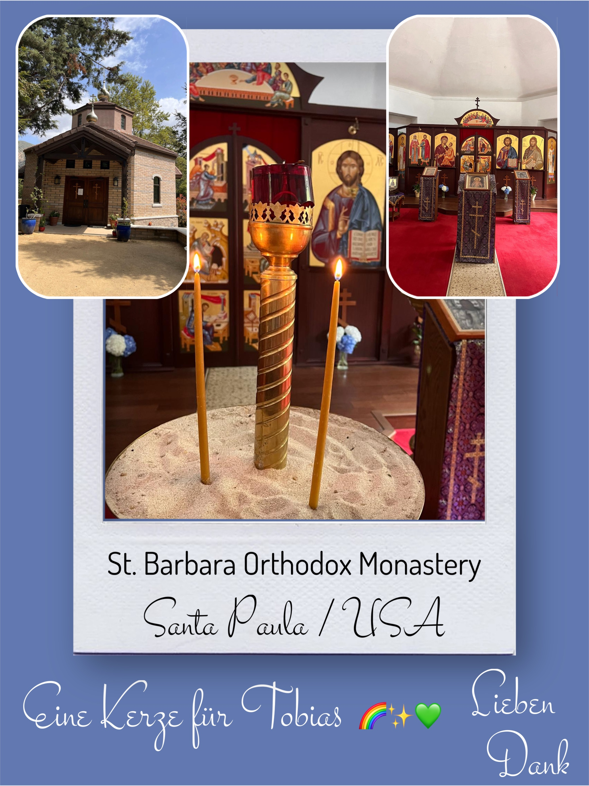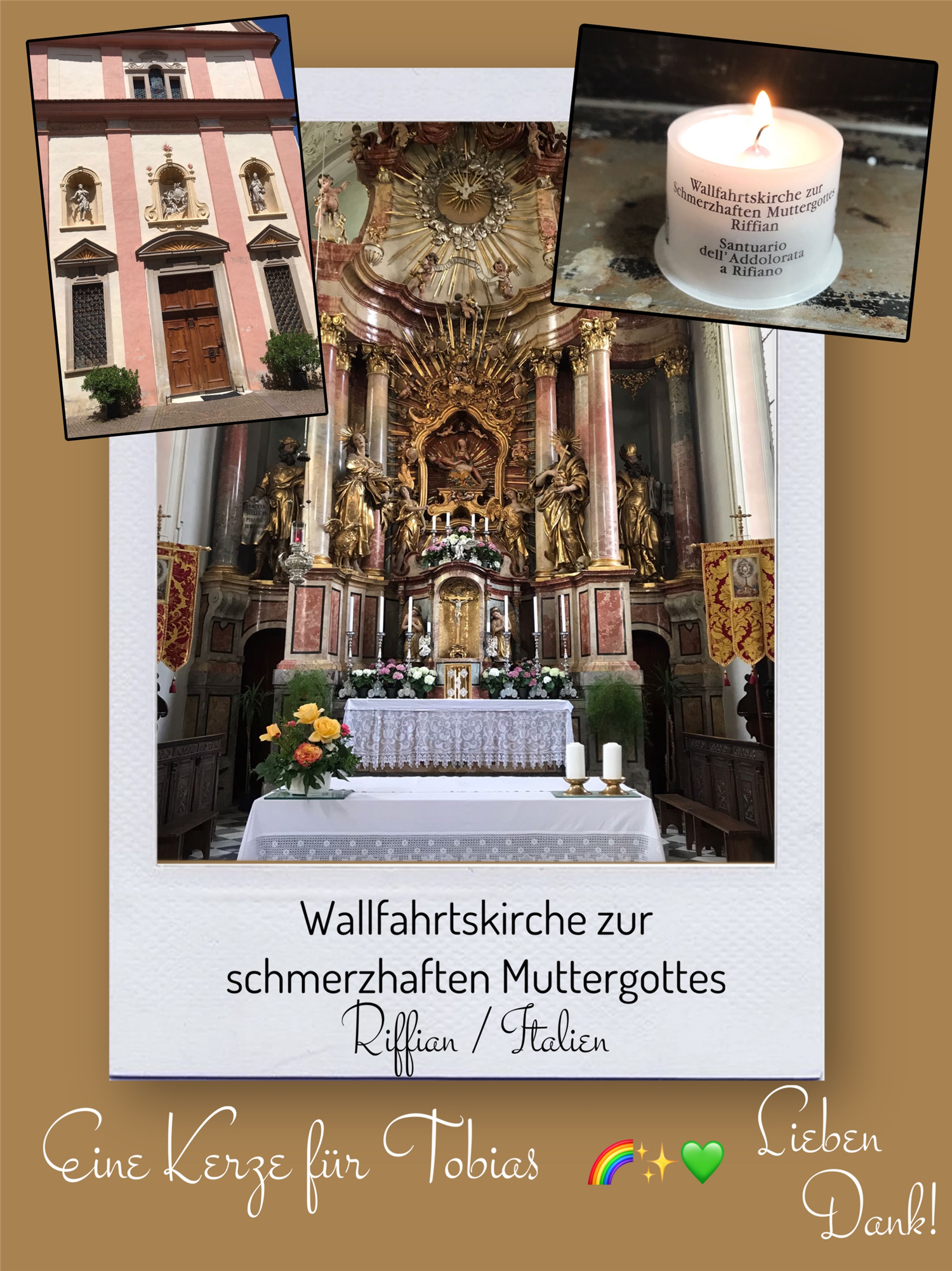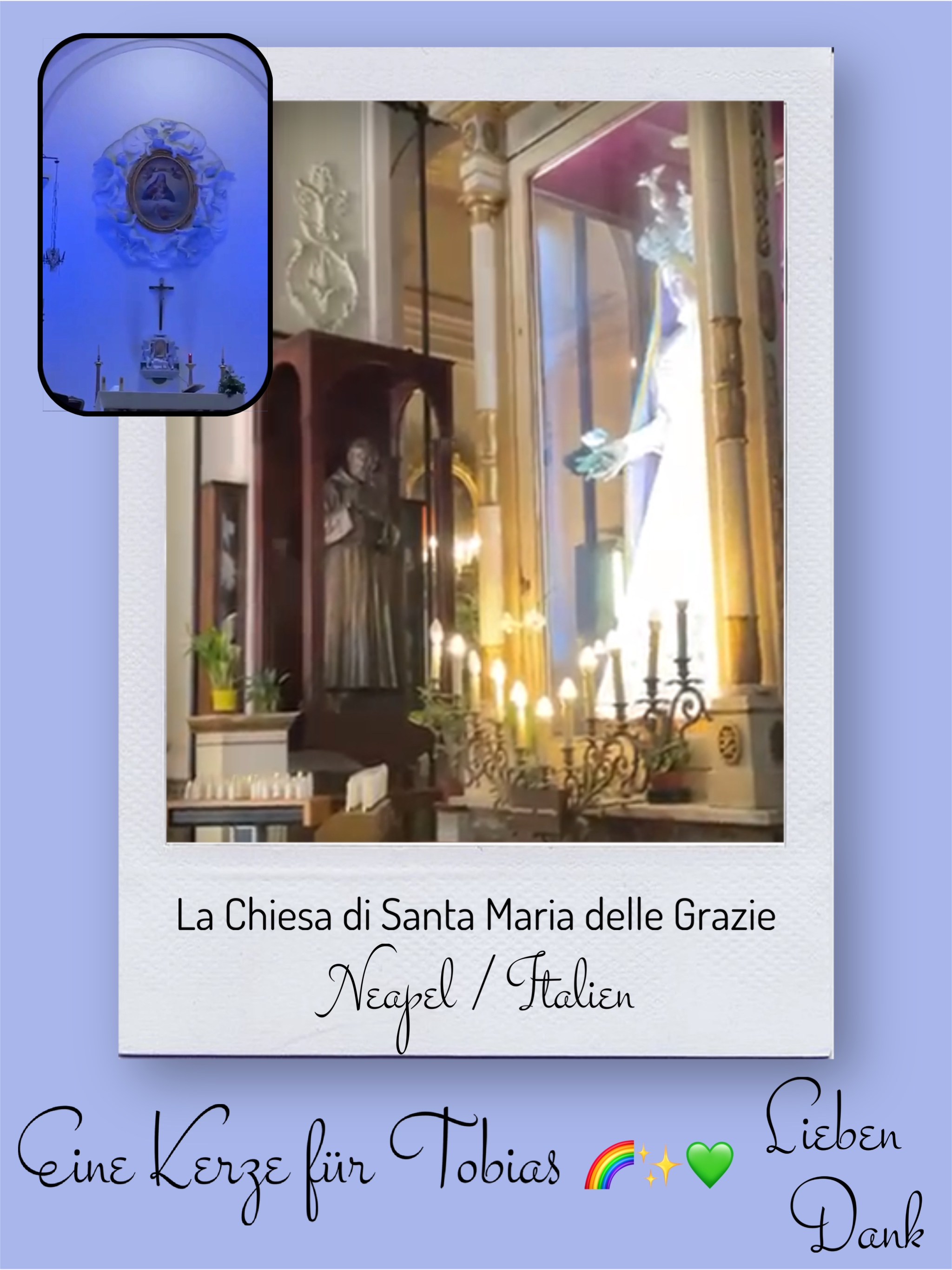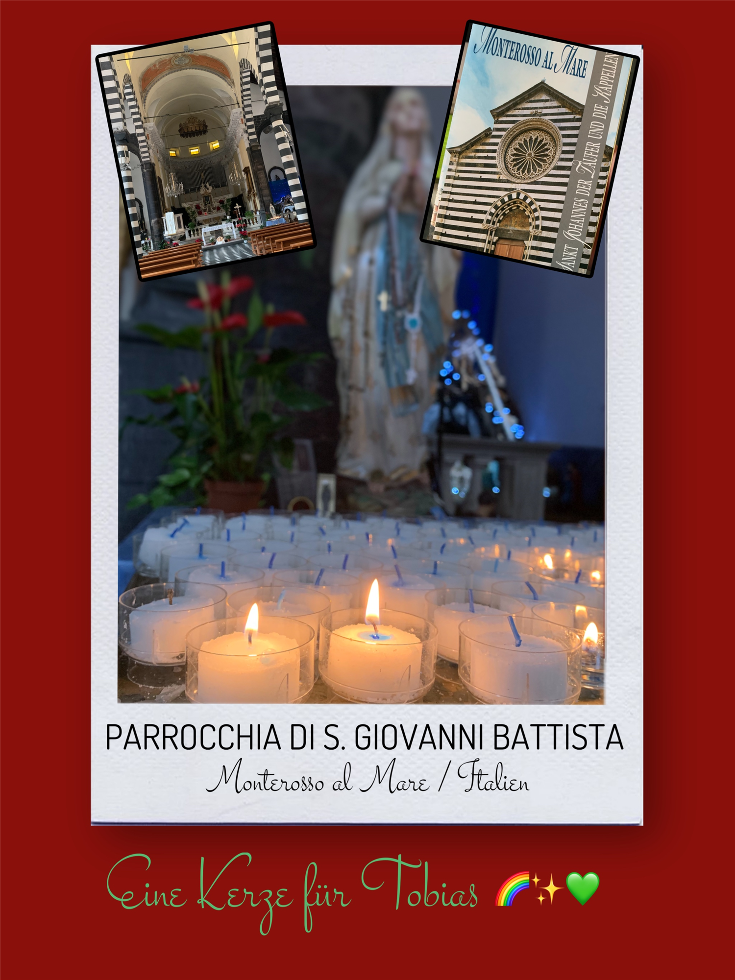 Bildersammlung von Kerzen, die im Namen und Gedenken an Tobias angezündet wurden. Von lieben Verwandten, Freunden, Bekannten und einfach allen Menschen, die Tobias nahe standen und an ihn denken. Herzlichen Dank euch allen! In liebevoller Erinnerung an Tobias