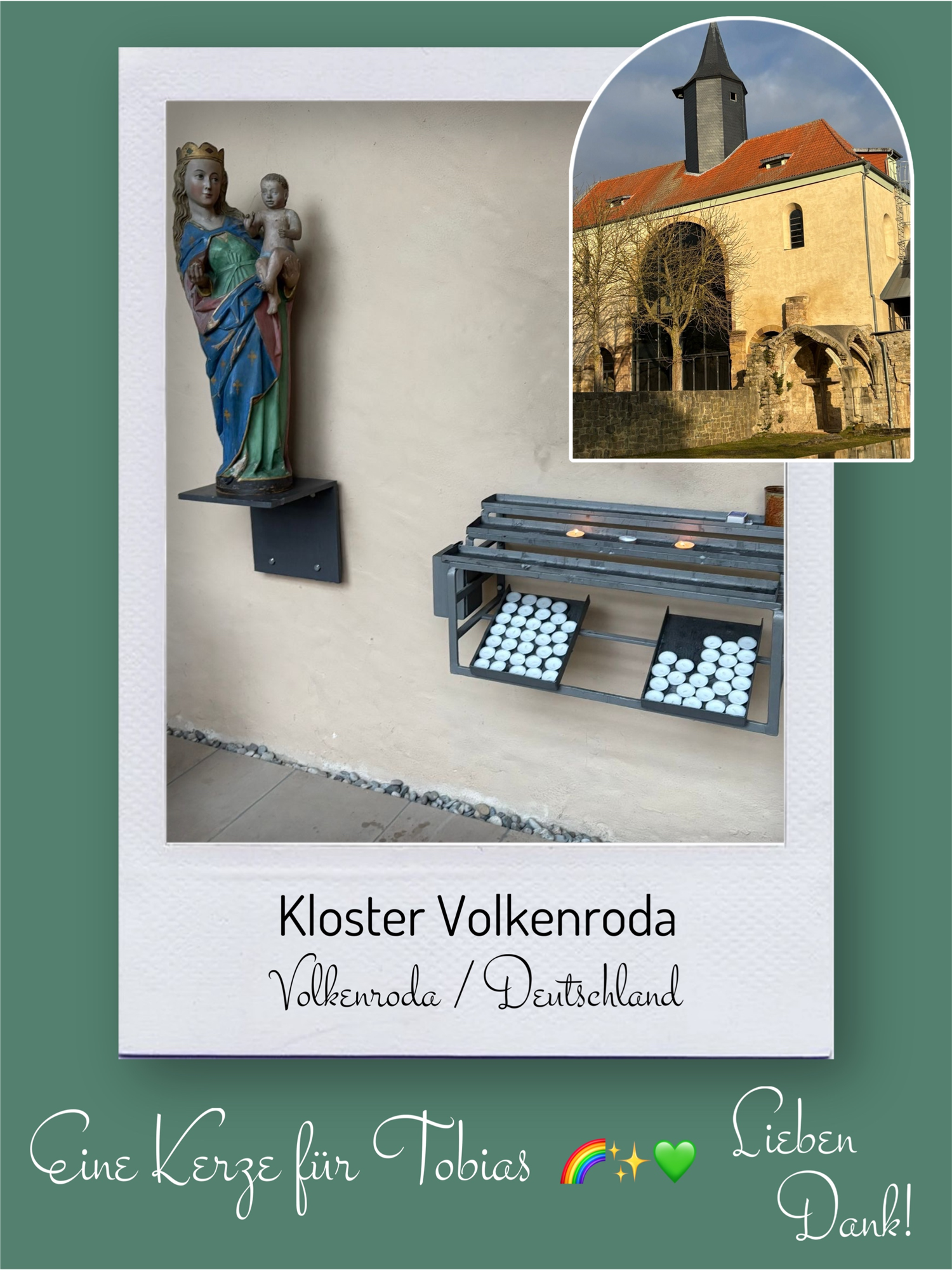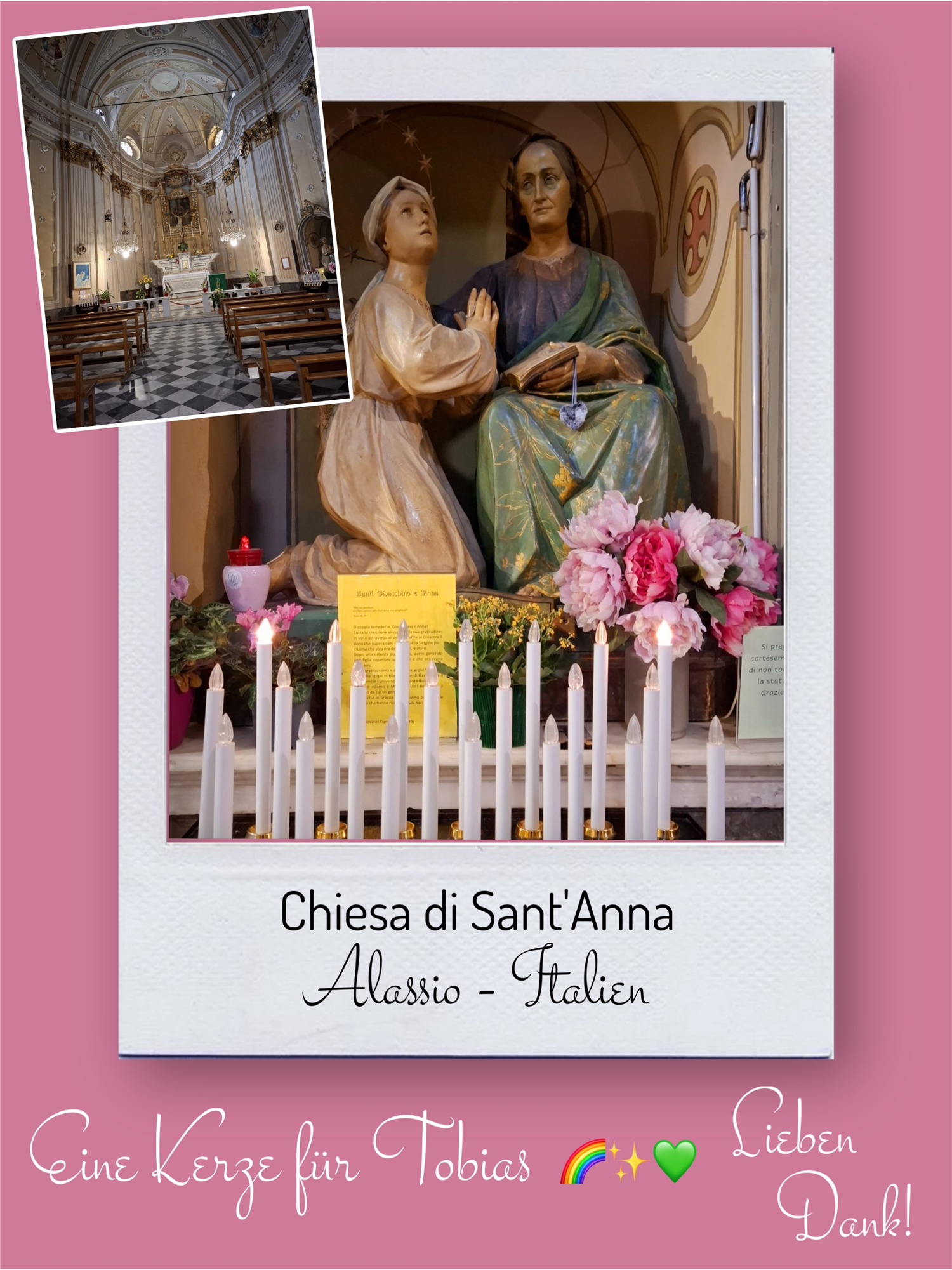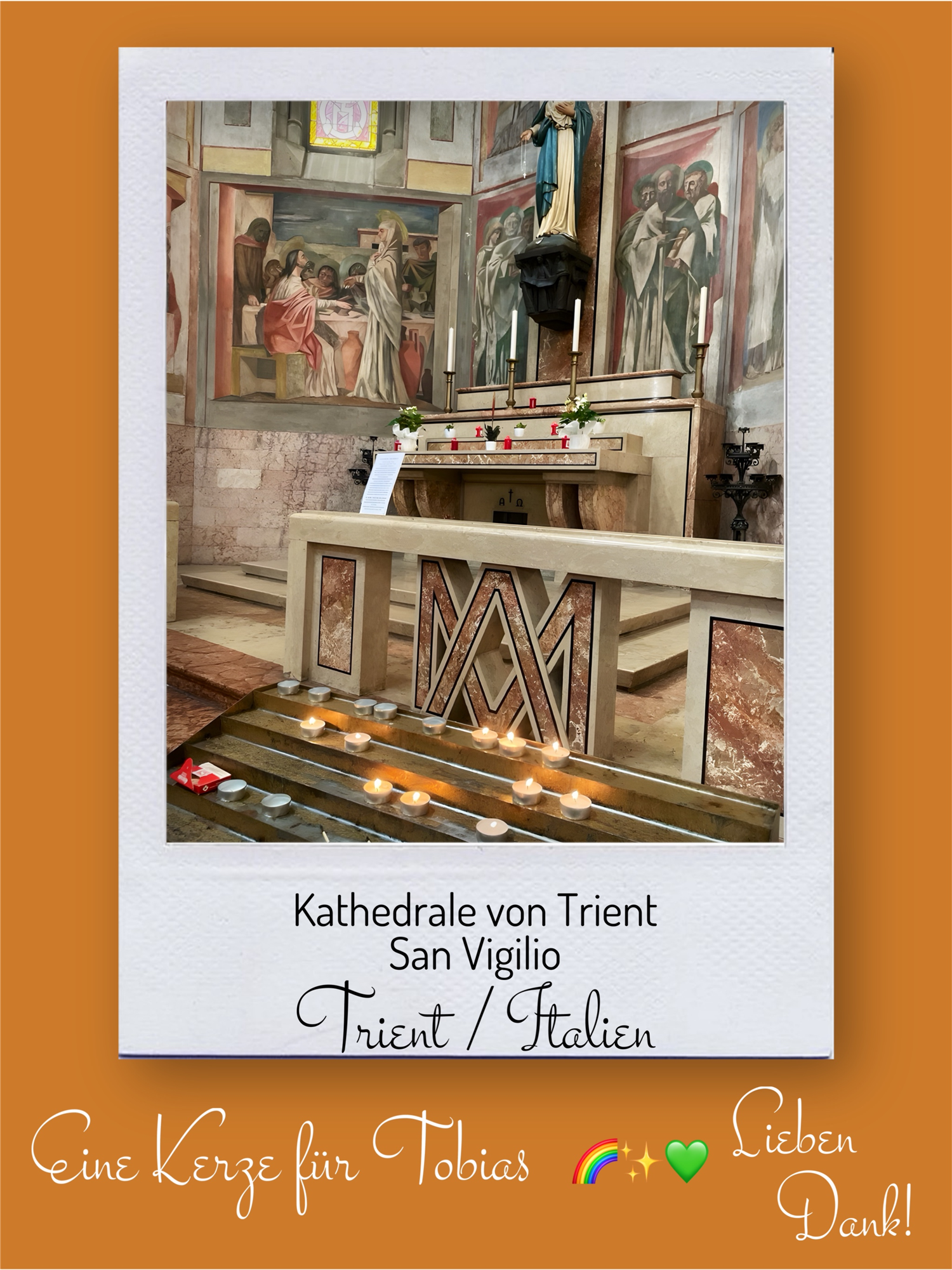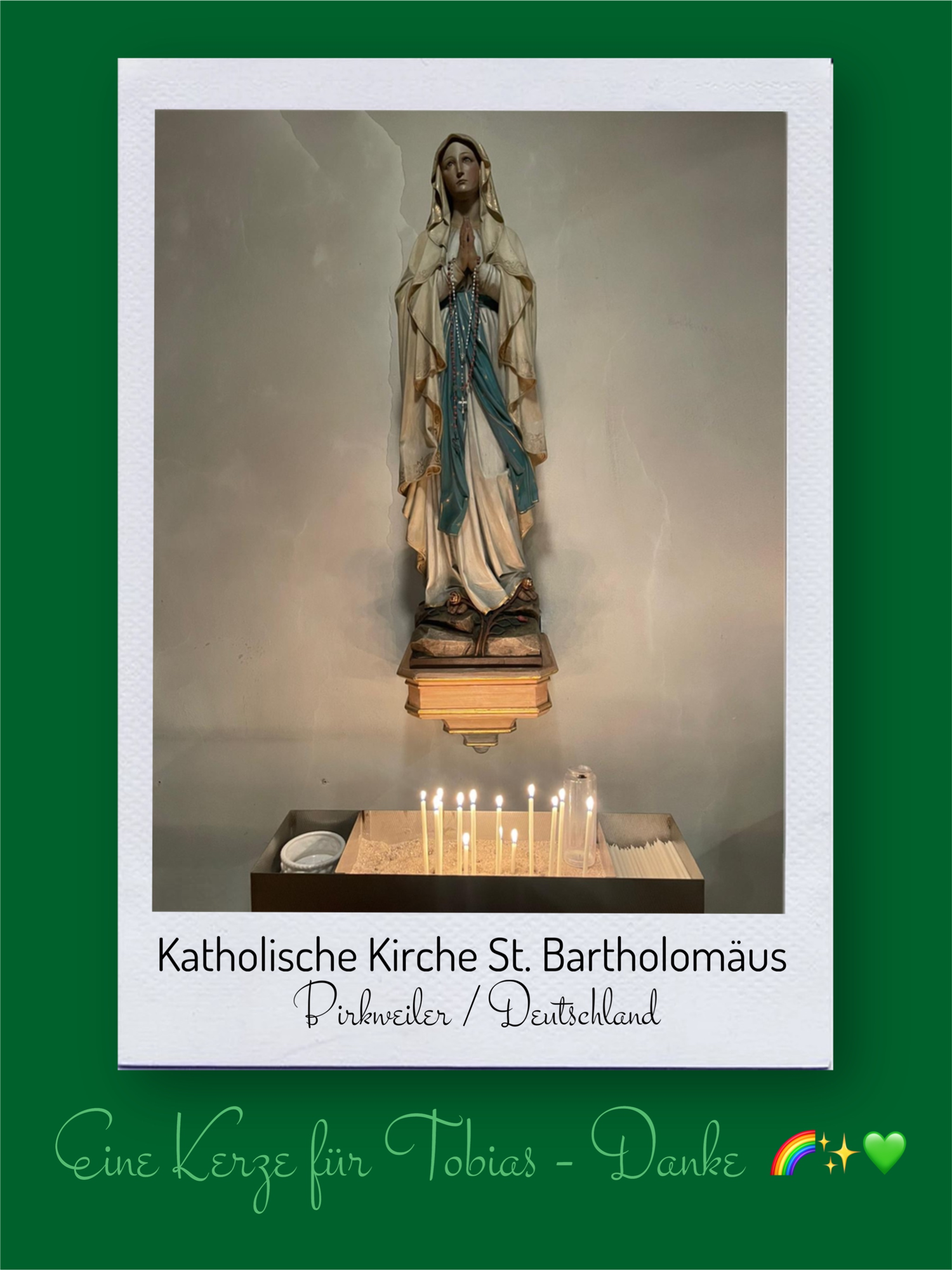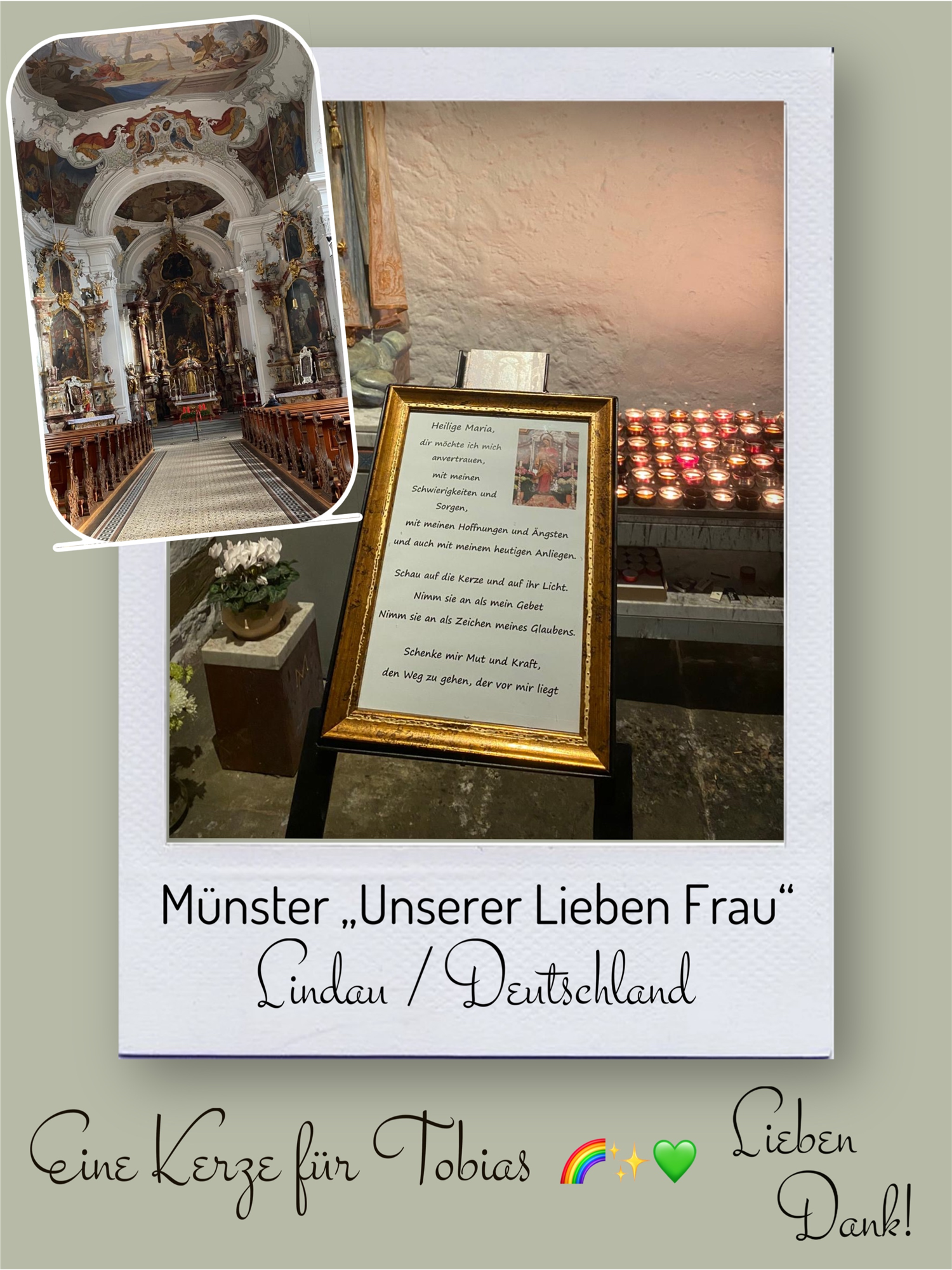 Bildersammlung von Kerzen, die im Namen und Gedenken an Tobias angezündet wurden. Von lieben Verwandten, Freunden, Bekannten und einfach allen Menschen, die Tobias nahe standen und an ihn denken. Herzlichen Dank euch allen! In liebevoller Erinnerung an Tobias