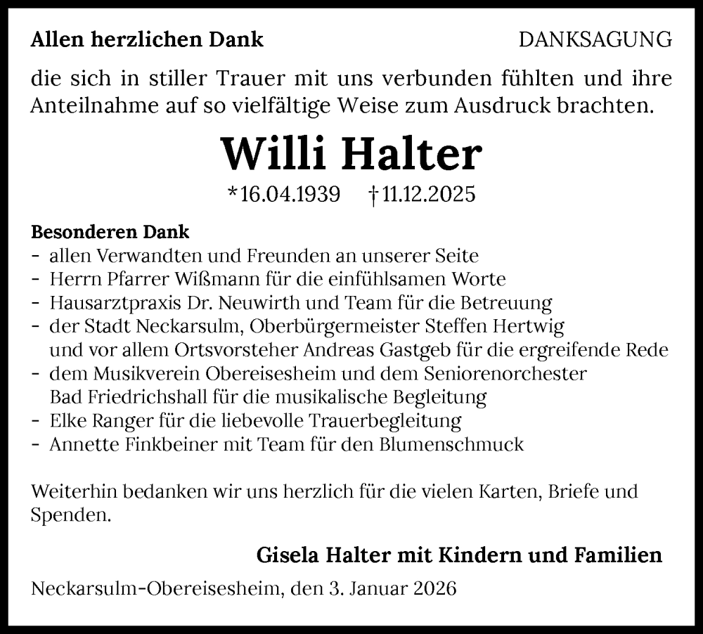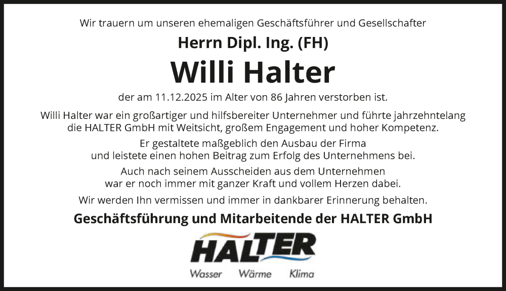 Hier finden Sie alle Traueranzeigen aus der Zeitung, die bisher für Willi Halter erschienen sind. Weitere Traueranzeigen, die in der Zeitung erscheinen, werden hier ebenfalls aufgelistet
